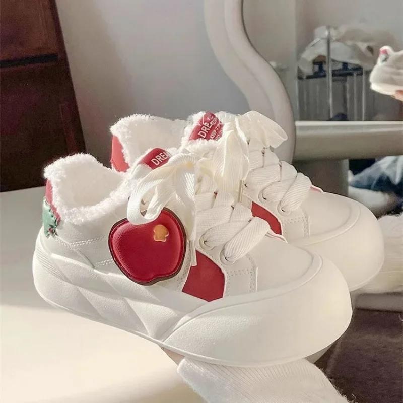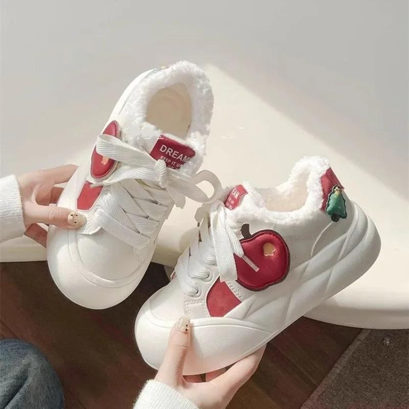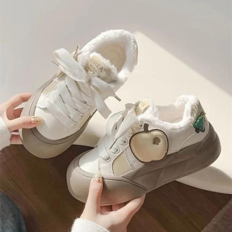Прекрасные кроссовки Apple для ходьбы, женские туфли на платформе, зимние теплые спортивные кроссовки на толстой подошве, дизайнерские модные кроссовки