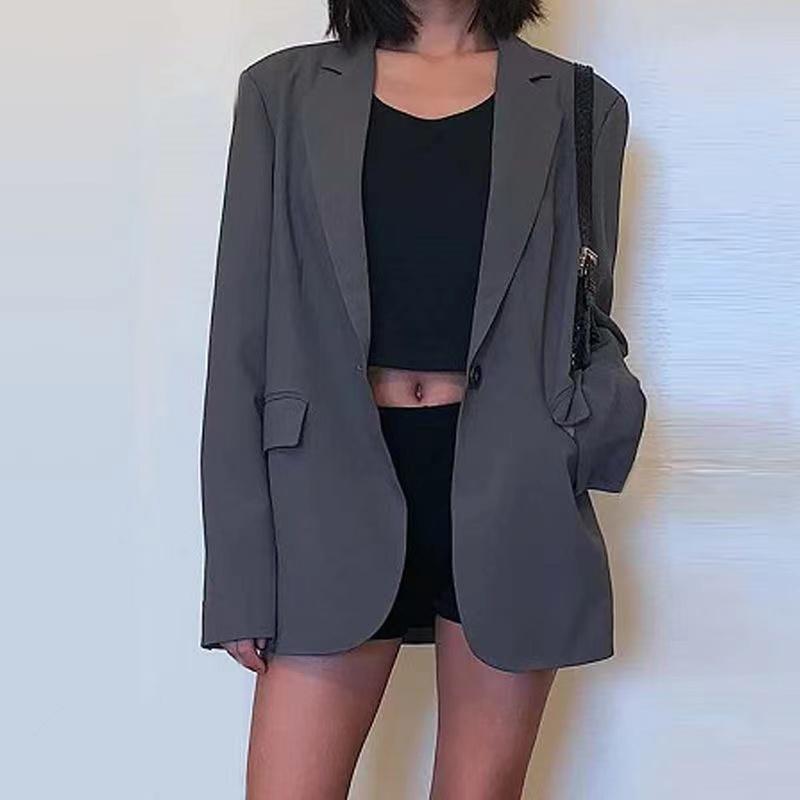 Модный женский серый пиджак, осенняя корейская версия, модный студенческий темпераментный женский костюм с одной пуговицей, уменьшающий возраст — купить товар онлайн с бесплатной доставкой по всему миру!