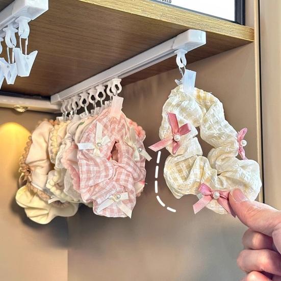 Конструкция направляющих слайдов: Легко доставайте резинки для волос благодаря конструкции с выдвижной направляющей этой вешалки, обеспечивающей легкий доступ и организацию без хлопот.