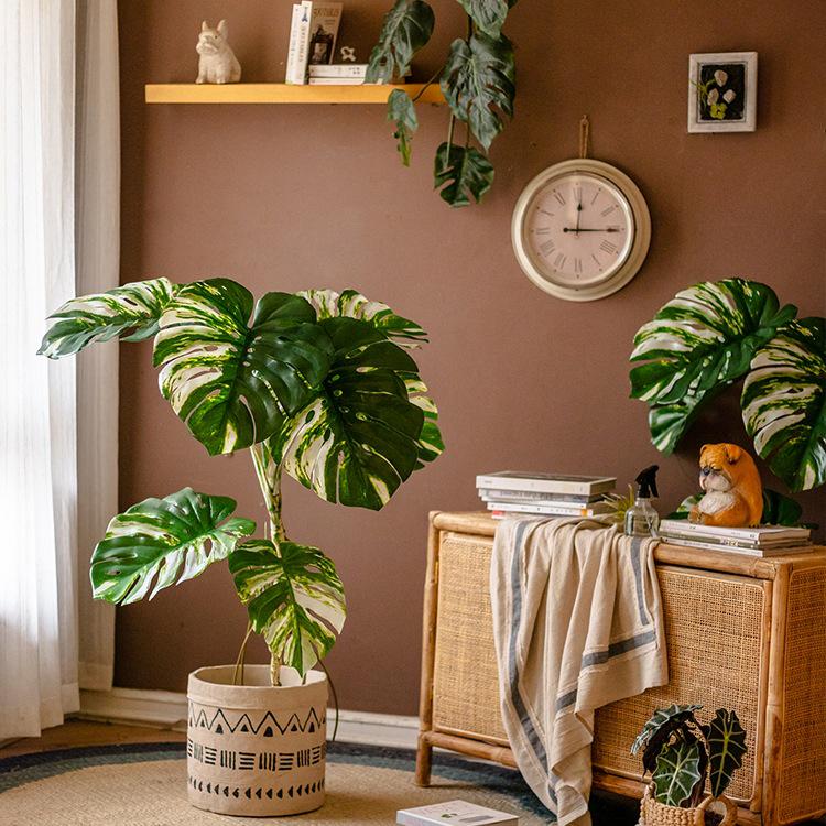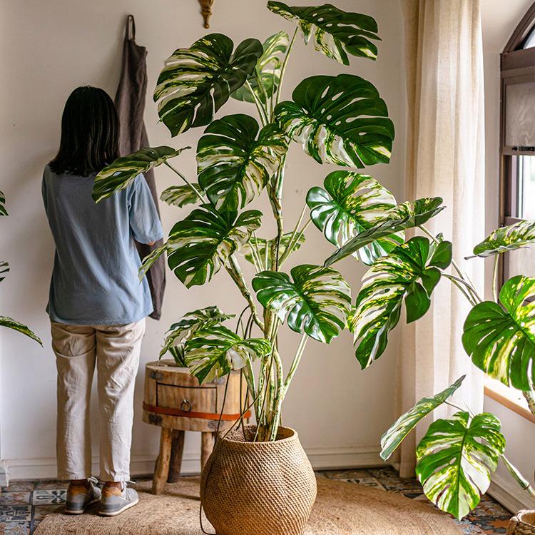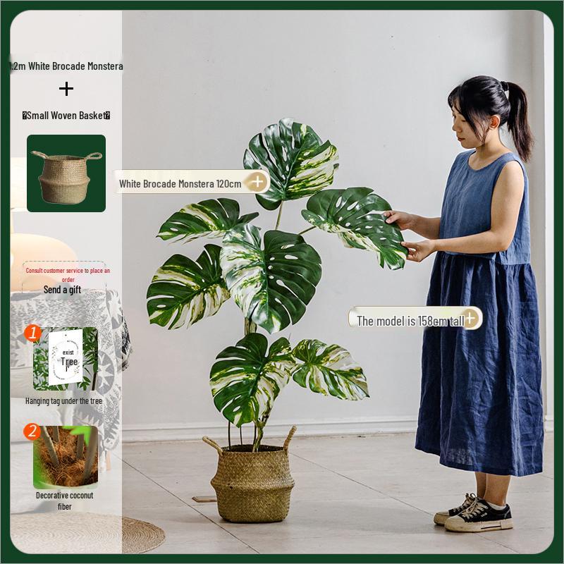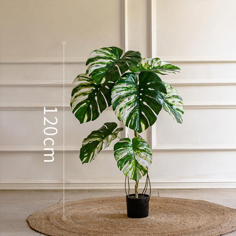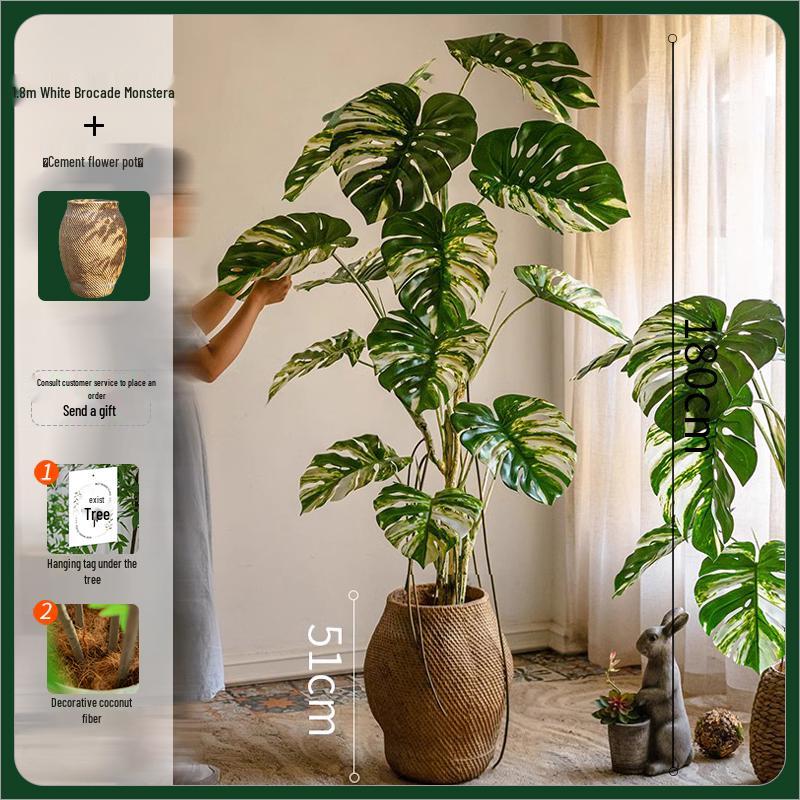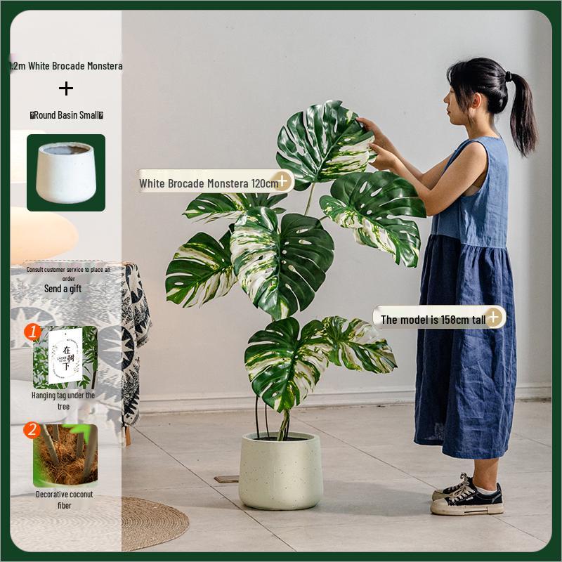 Белая Пестрая Монстера Искусственное Дерево - Большое, В Горшке, Декор в Стиле Легкой Роскоши для Гостиной