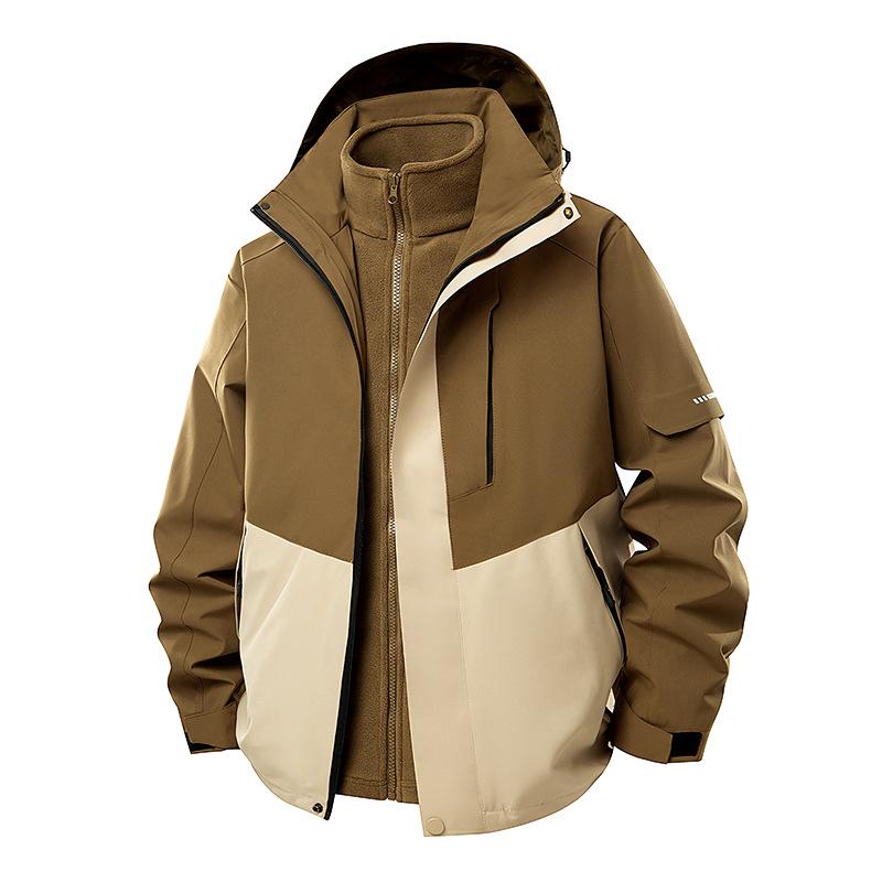 Уличная водонепроницаемая и ветрозащитная куртка «три в одном» с цветным съемным капюшоном