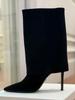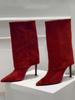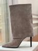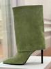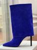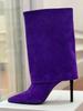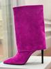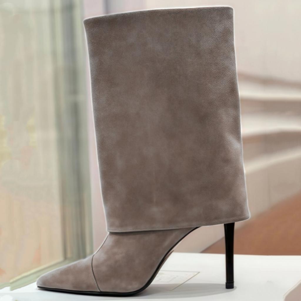 Полусапоги из замши до середины икры EU/US - Остроносые на шпильке Однотонные сапоги поверх брюк для женщин Офисный шик Зимняя обувь