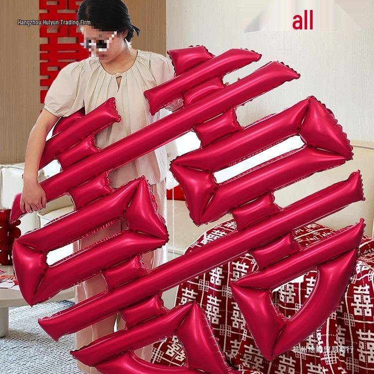 Wedding Double Happiness Balloons: Heart-Shaped Love Decors for Bride's Room & Engagement Scene.