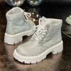 Ретро ботильоны Осень Зима Новые Стразы Шнуровка Круглый носок Платформа Большой размер Женская обувь