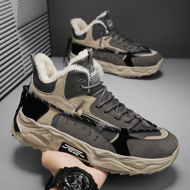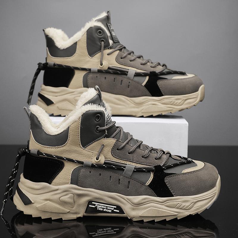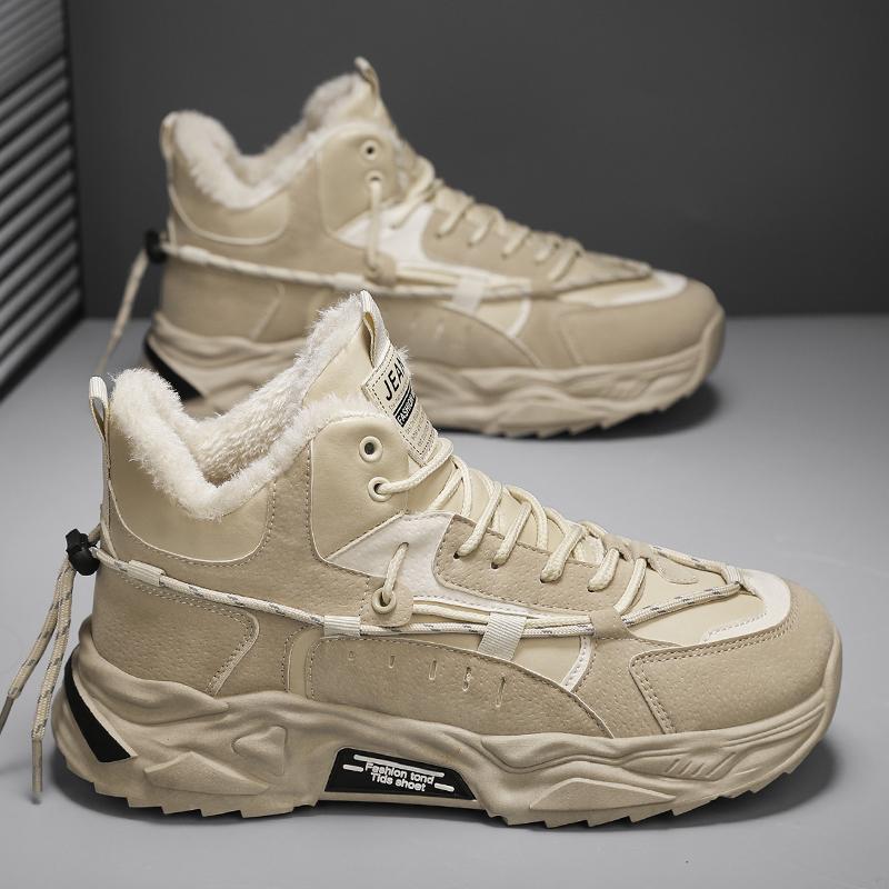 Уличные Нескользящие Износостойкие Кроссовки Модный Тренд Спортивная Обувь Для Мужчин Зимние Высокие Короткий Плюшевый Дизайн Теплая Повседневная Обувь