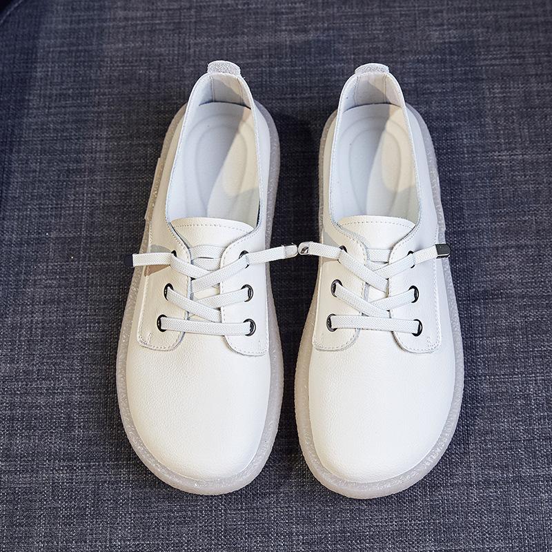 Женские кожаные туфли на мягкой подошве, в стиле мори, маленькие белые туфли, повседневные туфли для медсестер, обувь на плоской подошве с неглубоким вырезом, больших размеров для беременных