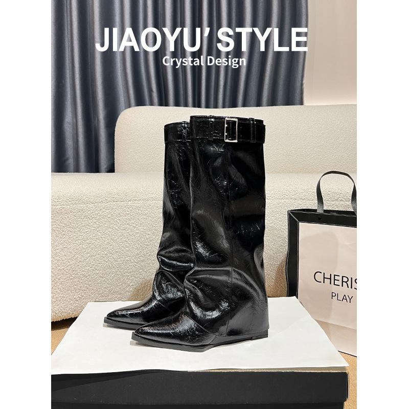 Genuine leather~ 5cm thick bottom heightening flip-flops women's outer wear 2025 summer new fashion casual one-pedal cool slippers