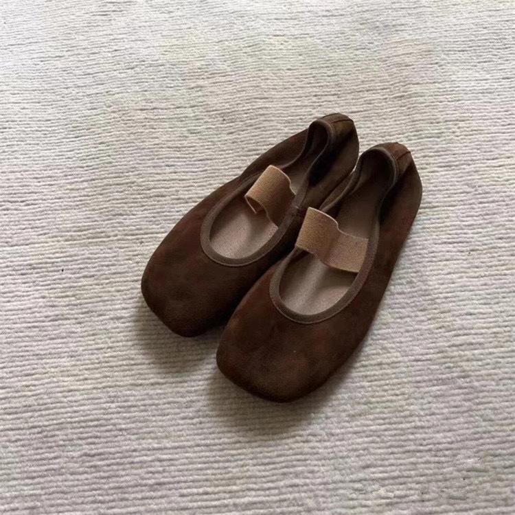 Кожаные ретро нишевые замшевые туфли-балетки с квадратным носком и неглубоким вырезом, удобные, на плоской подошве, туфли Мэри Джейн, женская обувь