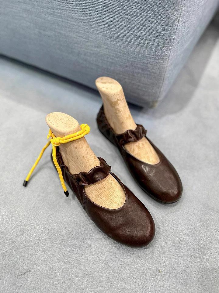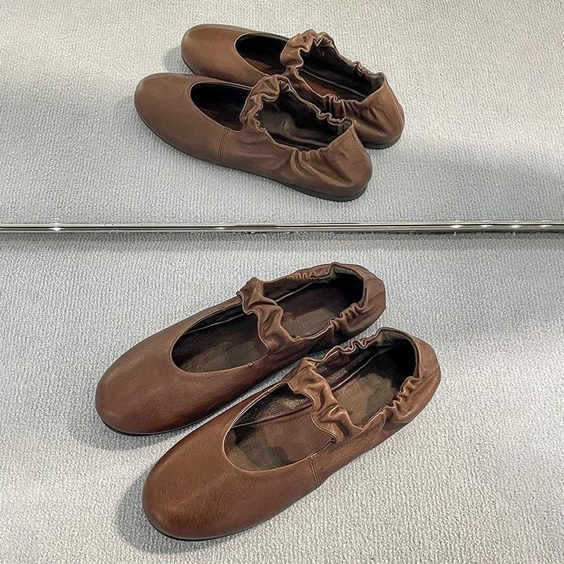 Версия из коровьей кожи~ Ретро круглый носок, мелкий вырез, плиссированное слово, одинарные туфли Мэри Джейн, женские весенне-осенние балетки