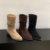 Версия из овчины~ нишевые матовые замшевые шнурки с наконечниками, внутренняя высота увеличивается, женские ковбойские ботинки в западном стиле, короткие ботинки 2025 года, тонкие ботинки