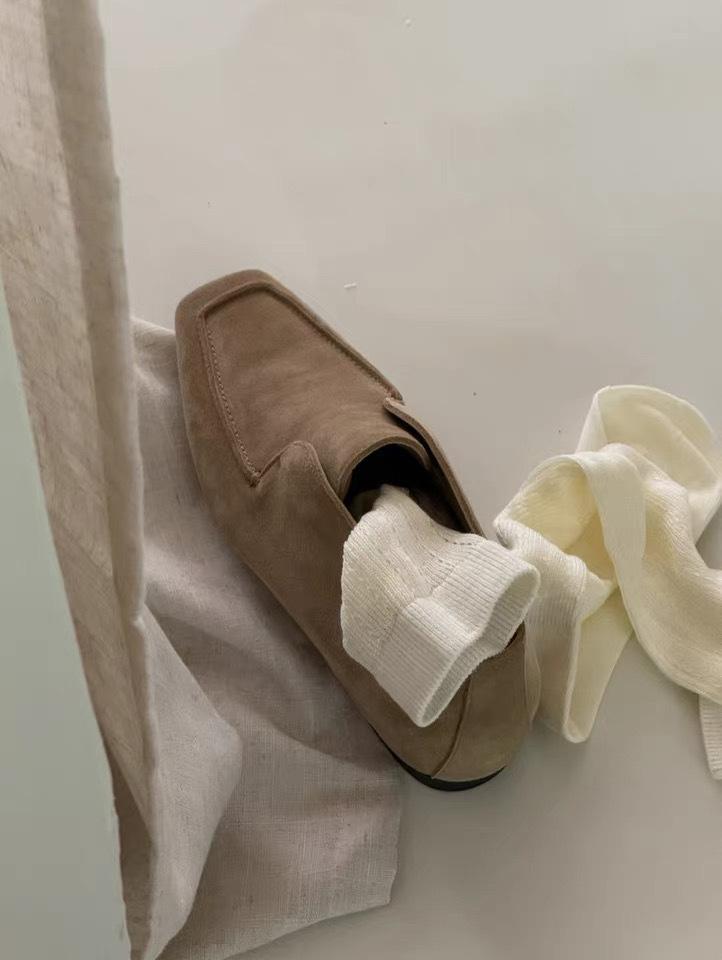Sheepskin version~ retro niche suede square head deep mouth one-pedal loafers women's 2025 autumn and winter new single shoes