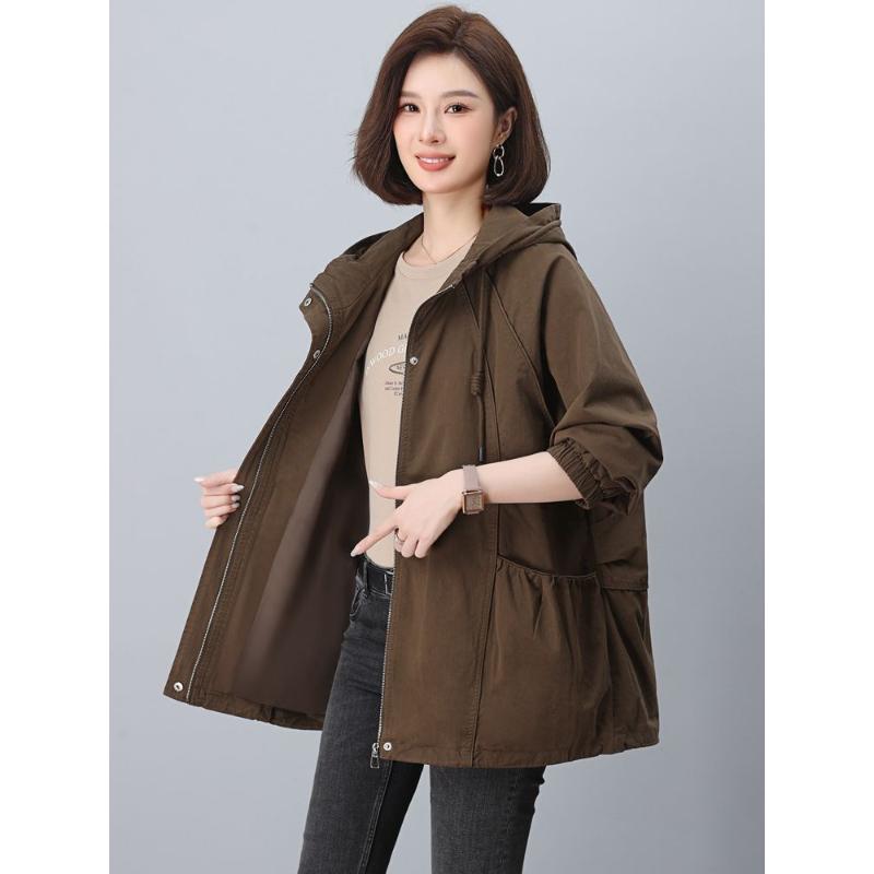 Корейская свободная ветровка средней длины Женская повседневная куртка средней длины Топ с капюшоном