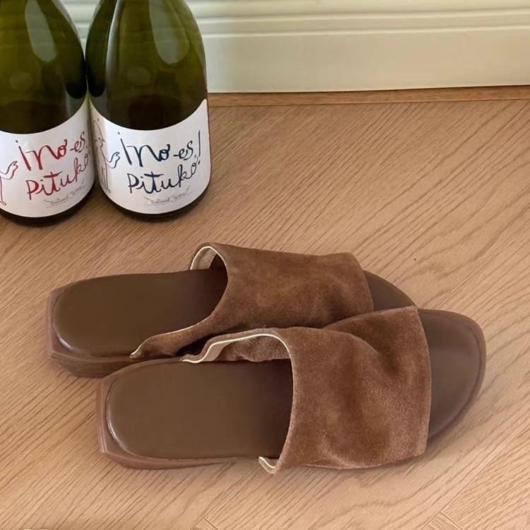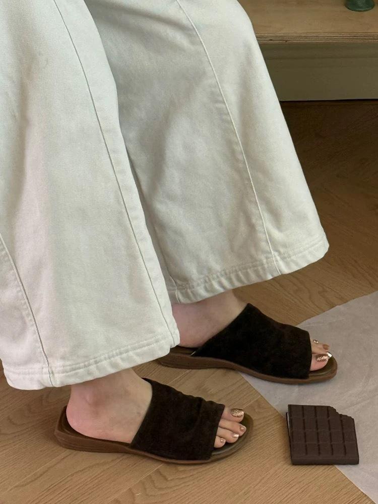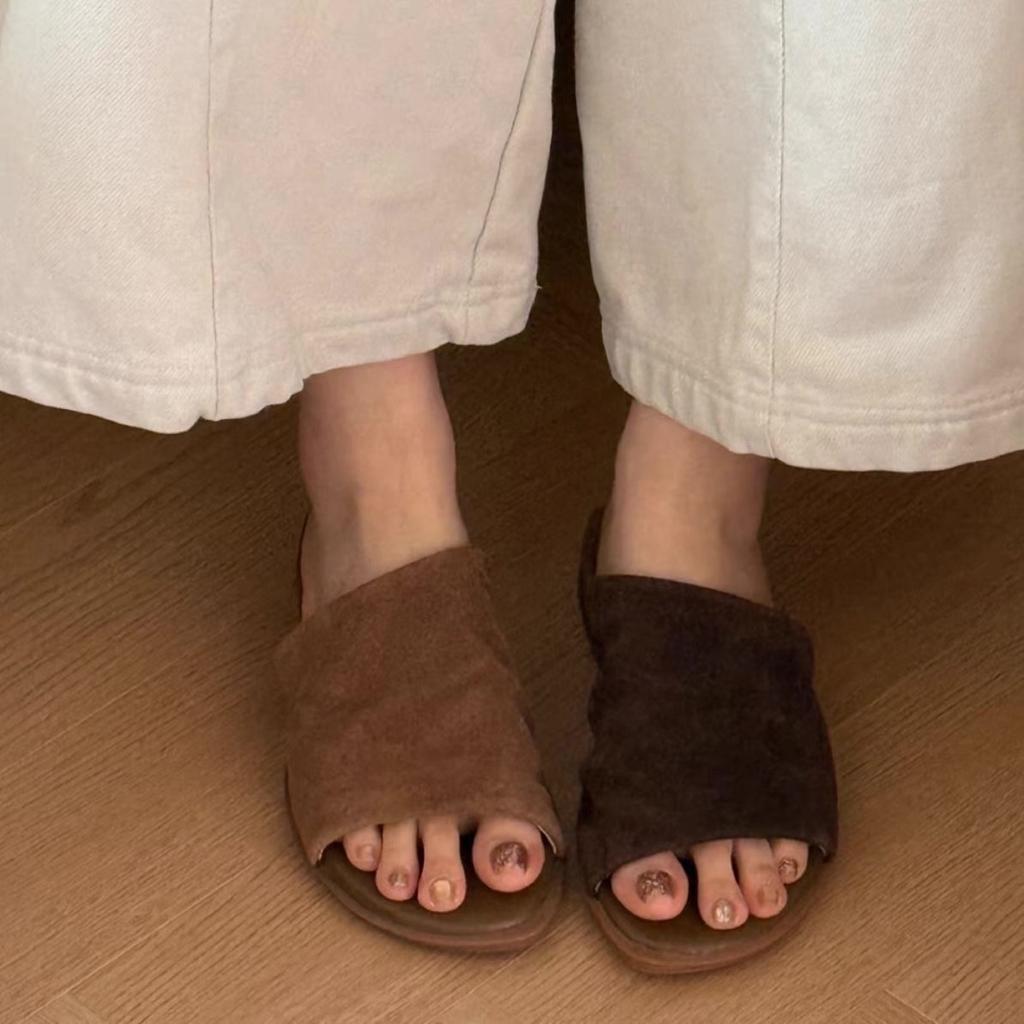Версия из овчины~ ретро нишевые ленивые шлепанцы на плоской подошве с одним ремешком для женщин, для ношения летом 2025 года, новые шлепанцы с открытым носком, прохладные