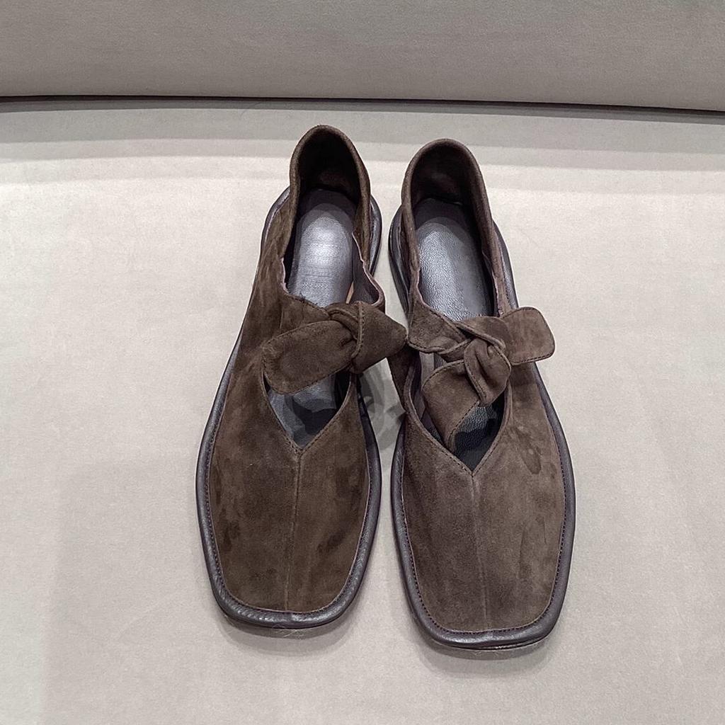 Кожа Замша Нишевый Бант Устойчивый Каблук Два Способа Носки Квадратный Носок Одинарные Туфли Женские Весенне-Осенние Балетки Мэри Джейн
