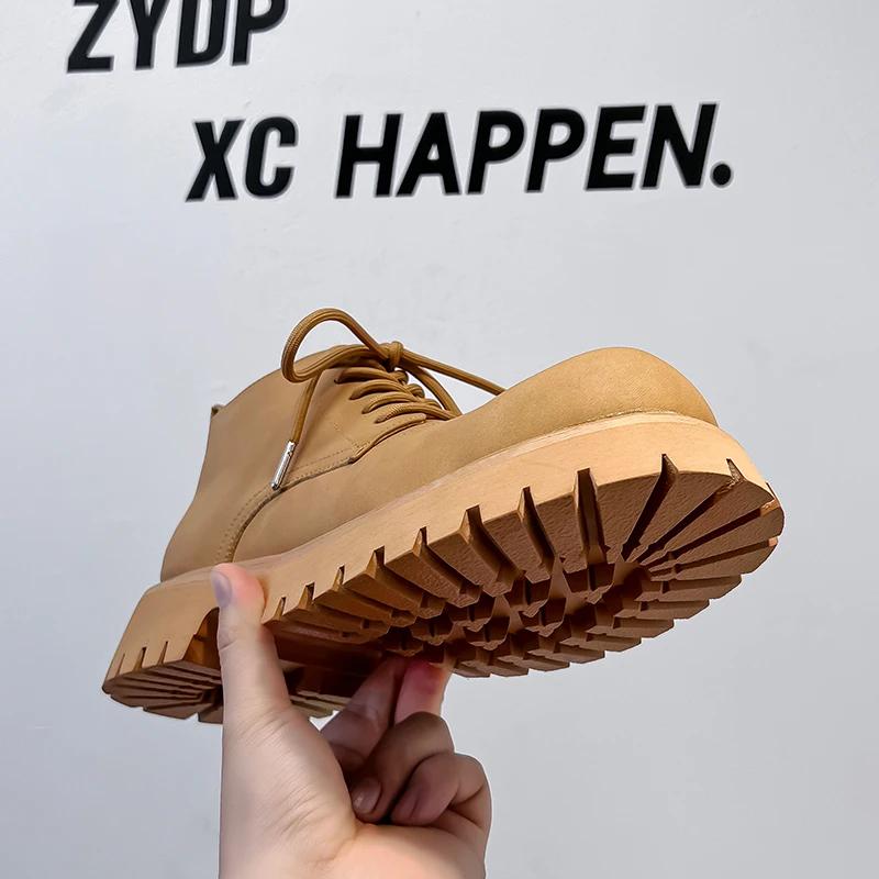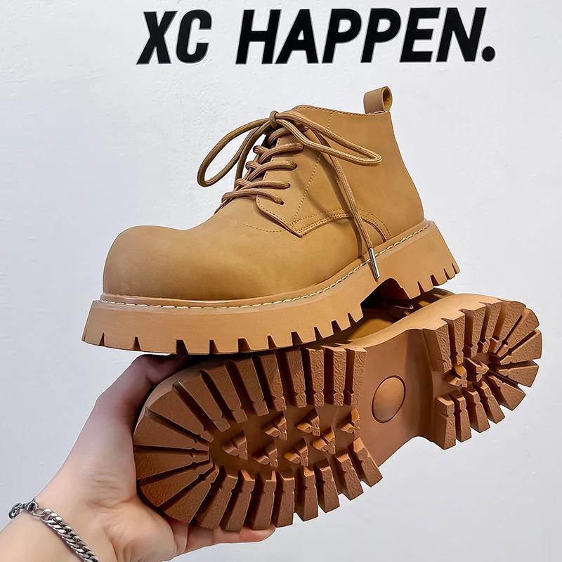 Модная Роскошная Мужская Обувь До Щиколотки Винтажная Британская Кожаная Обувь Ручной Работы Платье Инструментальная Уличная Обувь Осень Зима Обувь на Платформе