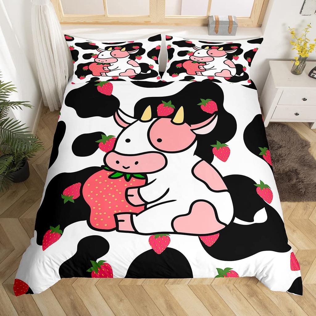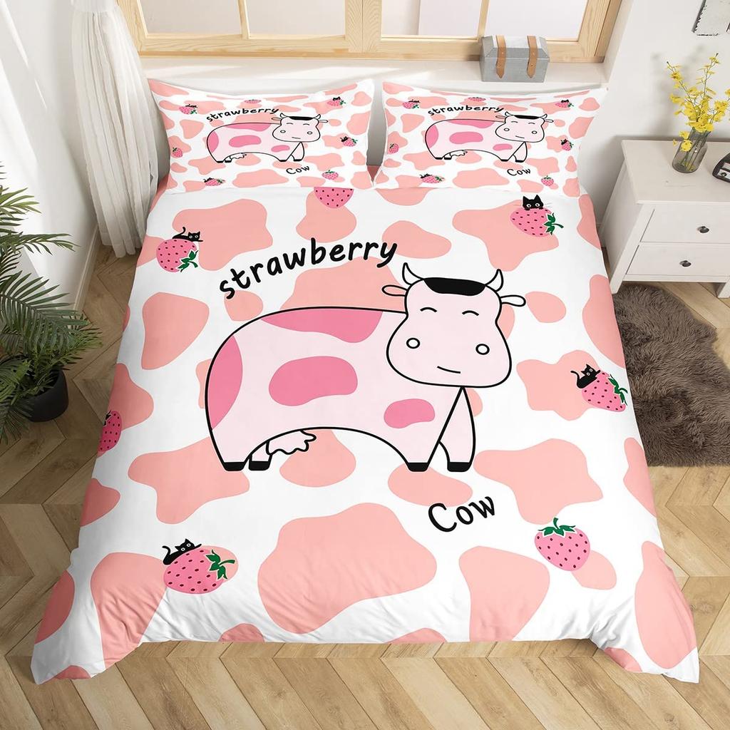 Милый комплект пододеяльника с коровкой, Каваийская горная корова, для девочек, детей, женщин, Постельное белье, Прекрасный розовый, Фермерский дом, Анималистический декор, Пододеяльники