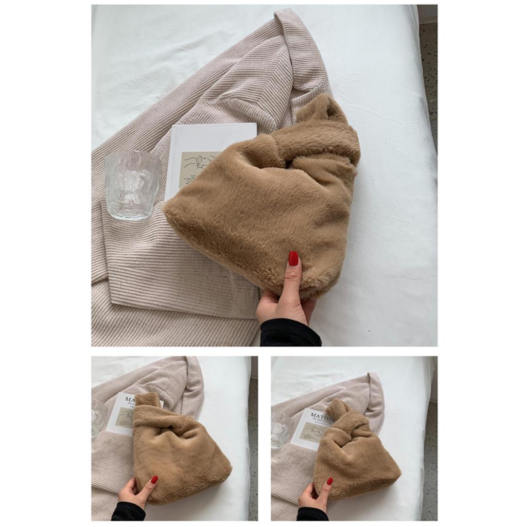 Пушистая сумочка для женщин Маленькая плюшевая сумка-тоут Зимняя пушистая женская сумочка Мягкая однотонная Сумочка для помады и ключей Маленькая сумка для хранения Универсальная для поездок