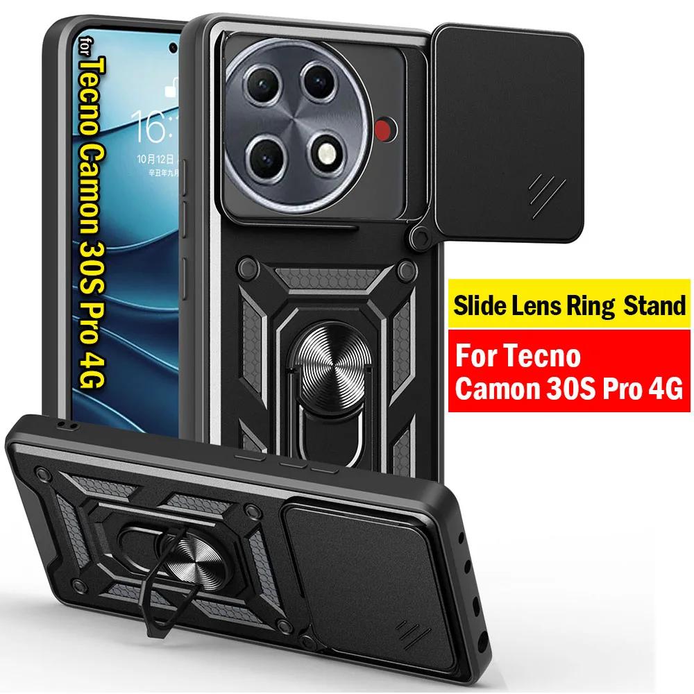 Чехол для Tecno Camon 30s Pro 4G Чехол Сдвижная защита камеры Вращающаяся подставка-кольцо Задняя крышка для Tecno Camon 30S Pro 4G Capa