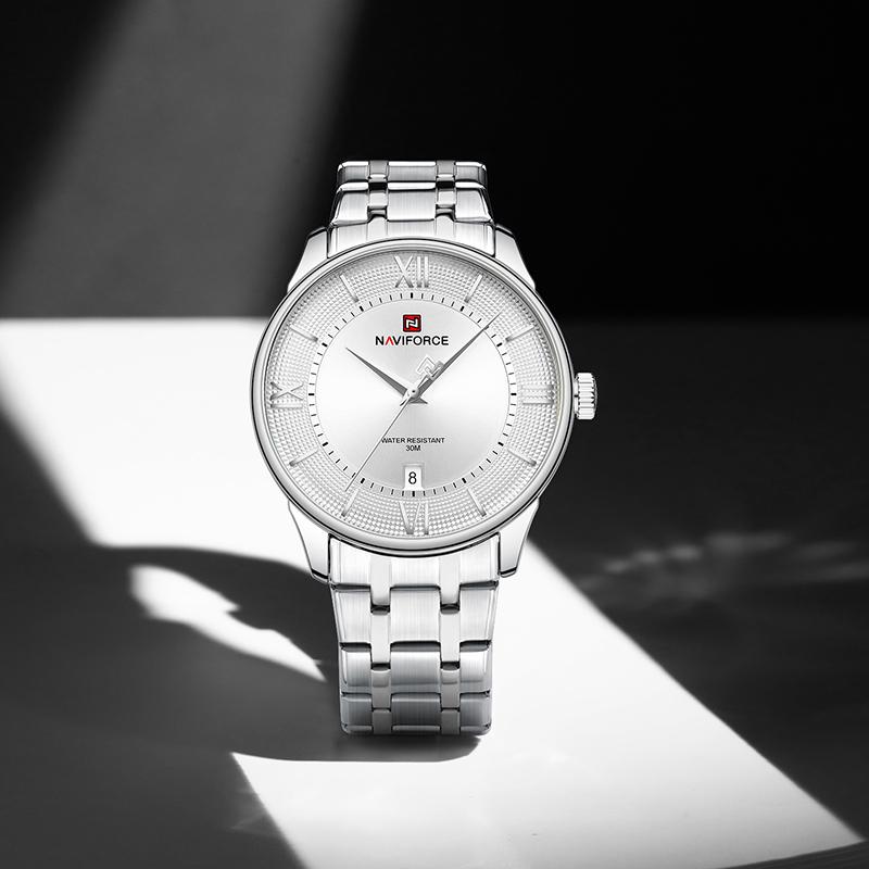 Naviforce Мужские кварцевые часы Повседневные с календарем Простой циферблат Водонепроницаемость 30 м Ремешок из нержавеющей стали Мужские повседневные часы Подарок NF9272S