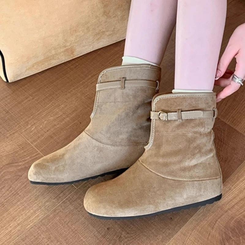 Женские зимние ботинки на плоской подошве, модные повседневные, с коротким мехом, для женщин, для ходьбы, новый бренд, хлопковые, теплые, Mujer Botas