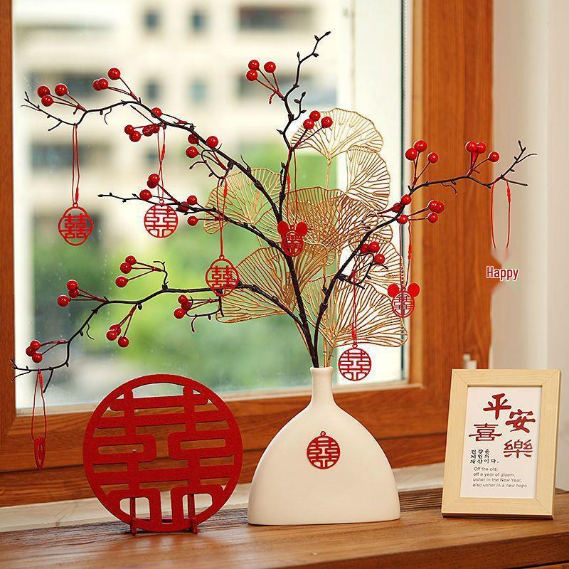 Красные фрукты Процветание Цветочная композиция Фигурка для Свадьбы и Декора Гостиной