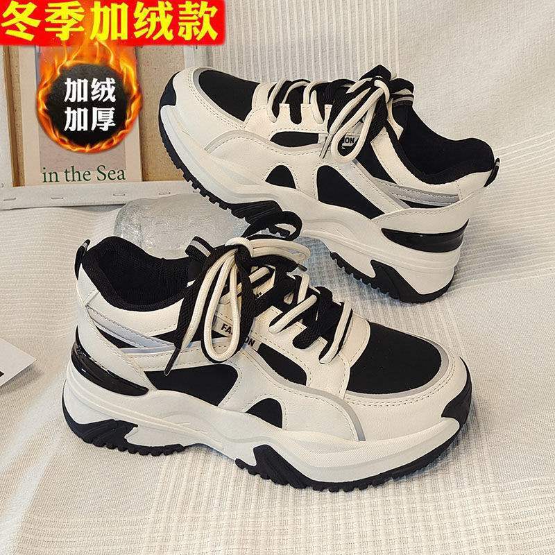 Women's shoes 2025 new winter velvet warm cotton shoes heightened platform leisure sports dad shoes children's models