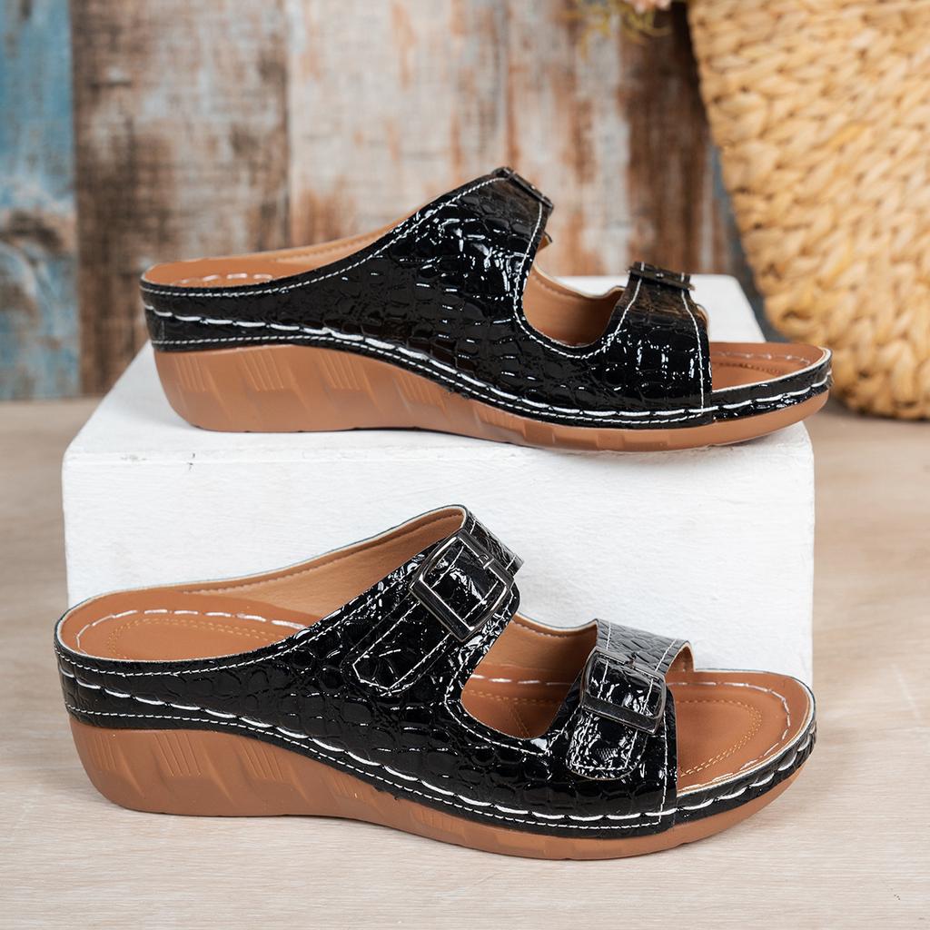 2025 внешнеторговые летние новые женские шлепанцы на танкетке с толстой подошвой большого размера с открытым носком и ремешком через подъем