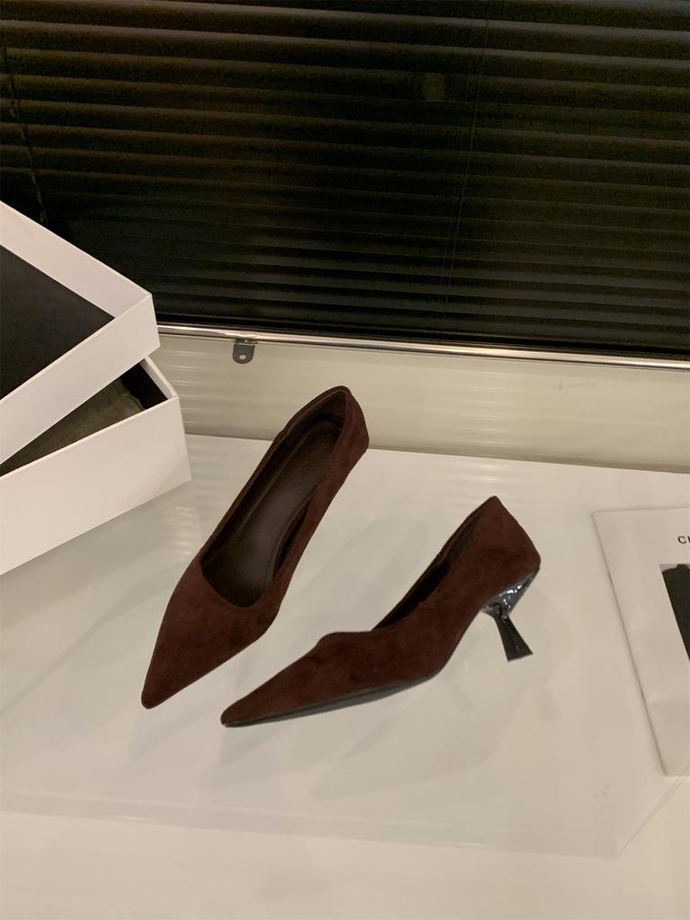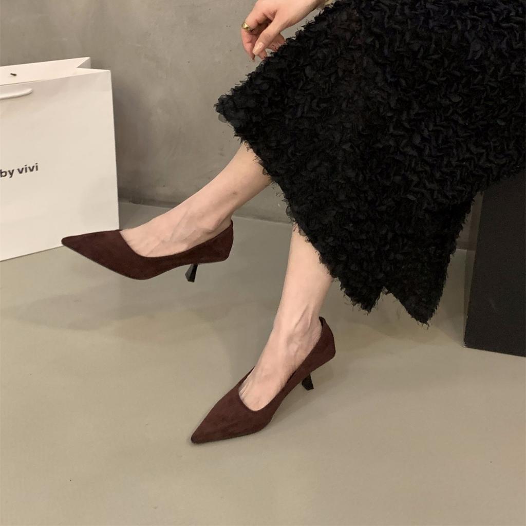 Туфли-лодочки на шпильке замшевые с острым носком однотонные женские туфли 2025 новая весна и осень темперамент светская львица черные туфли для работы