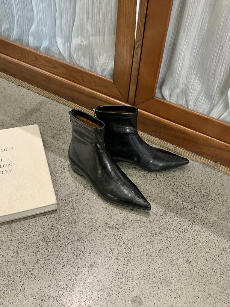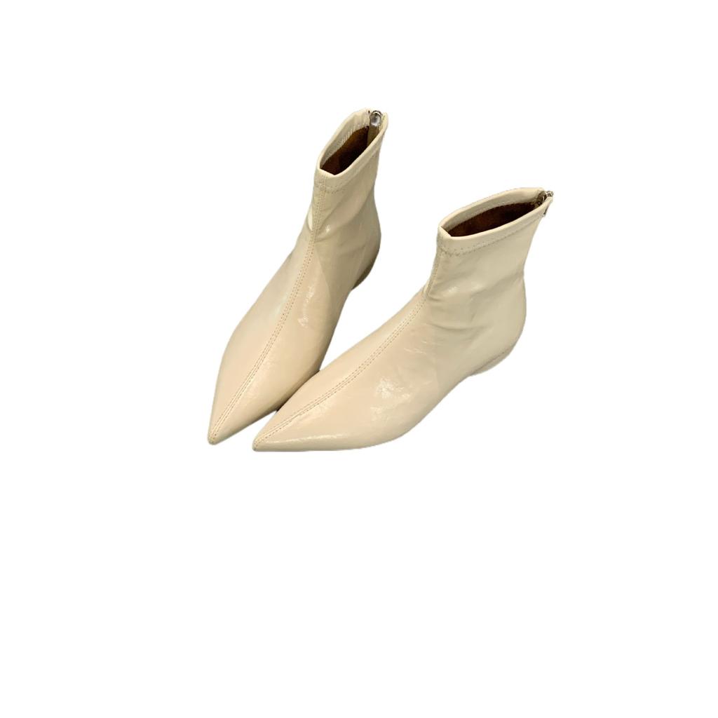 2025 Французские остроносые ретро эластичные тонкие туфли на танкетке, дизайн с низким каблуком, женская обувь, короткие ботинки, легкие женские ботинки для通勤