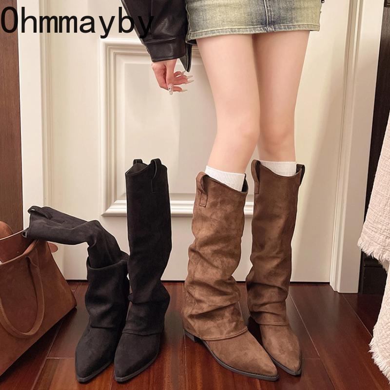 Осень Зима Винтажные Женские Сапоги до Колена Обувь Женские Элегантные Слипоны Современные Длинные Боты