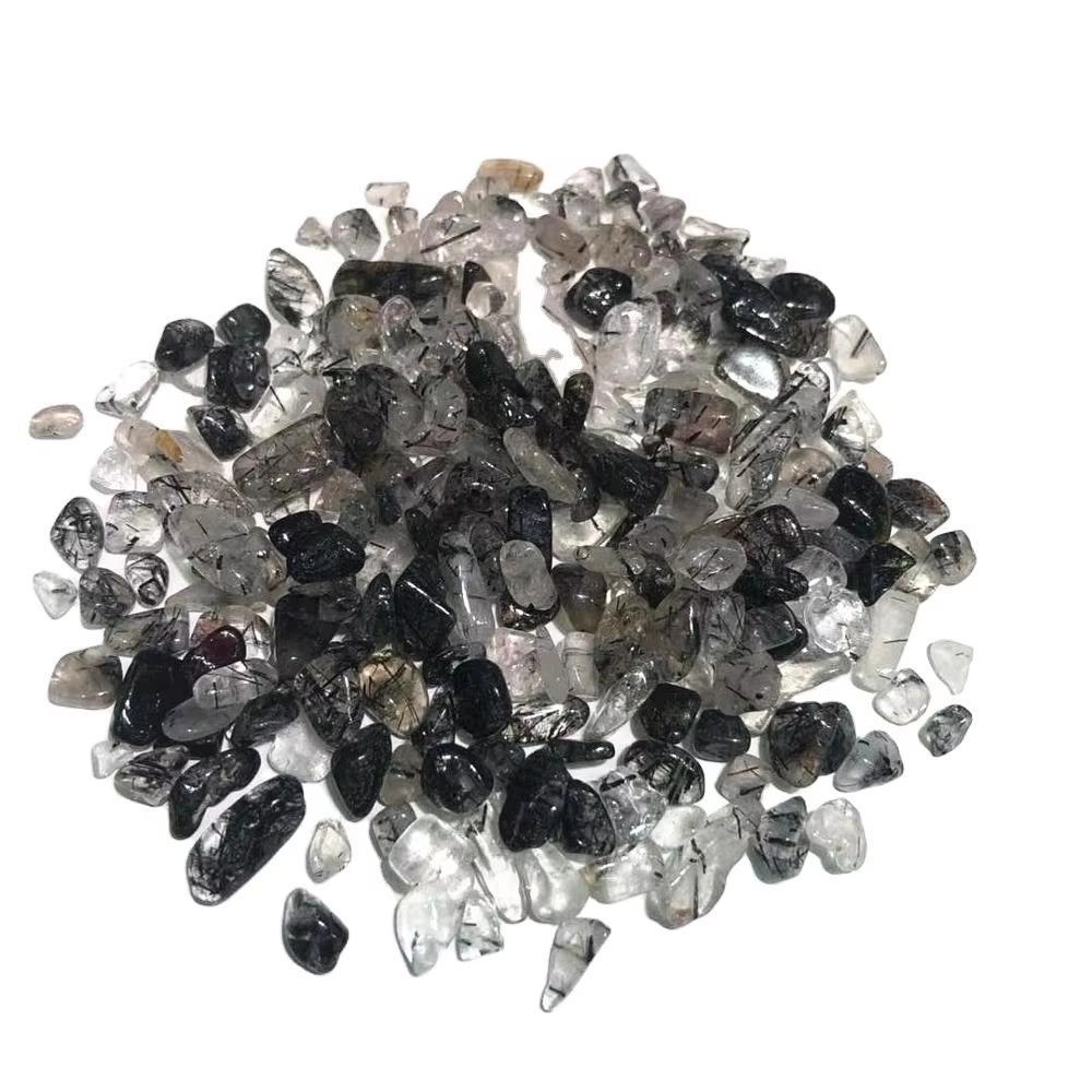 Бразильский Черный Рутиловый Кварц Дробленый Камень для Очищения и Декорации