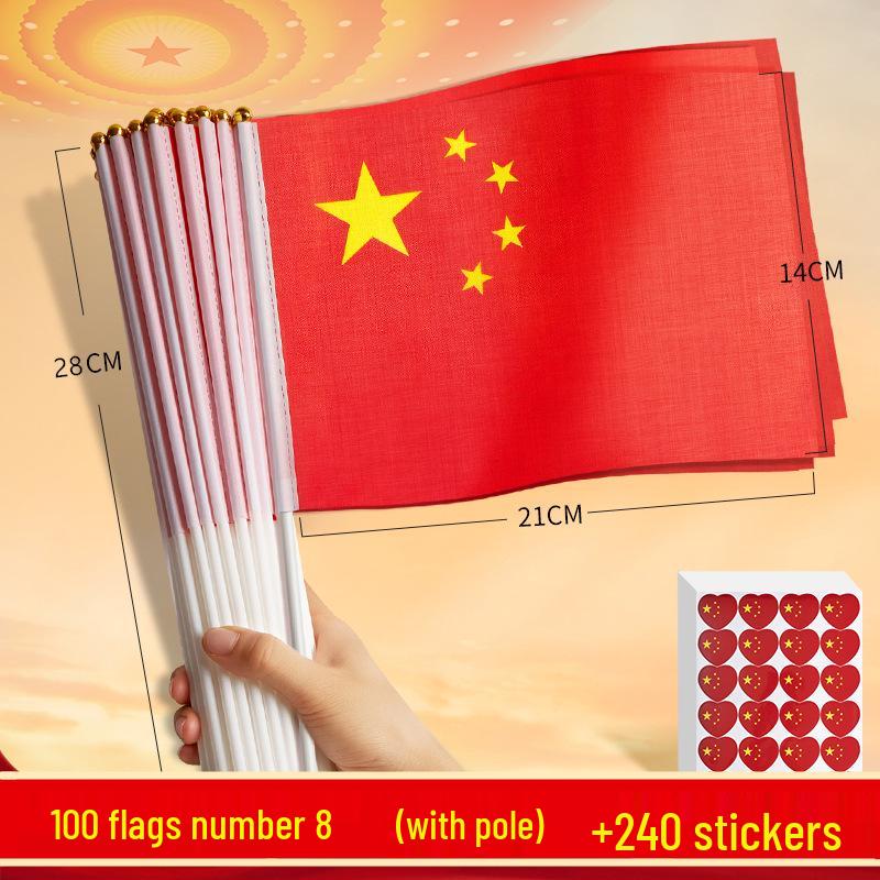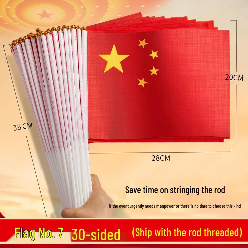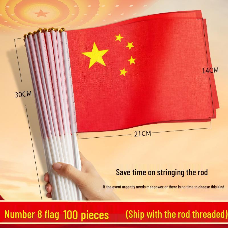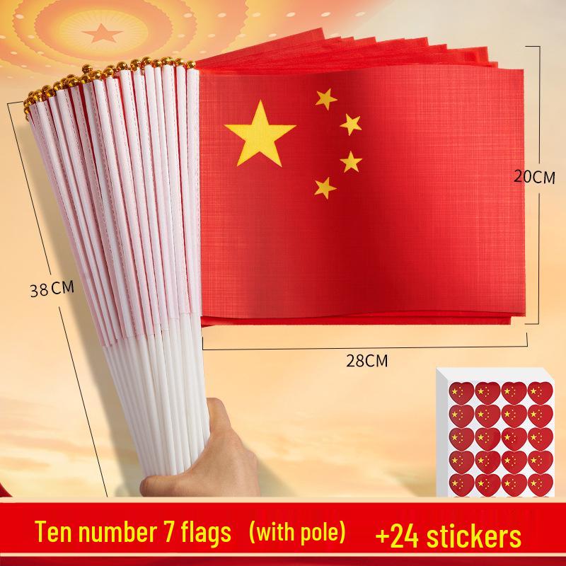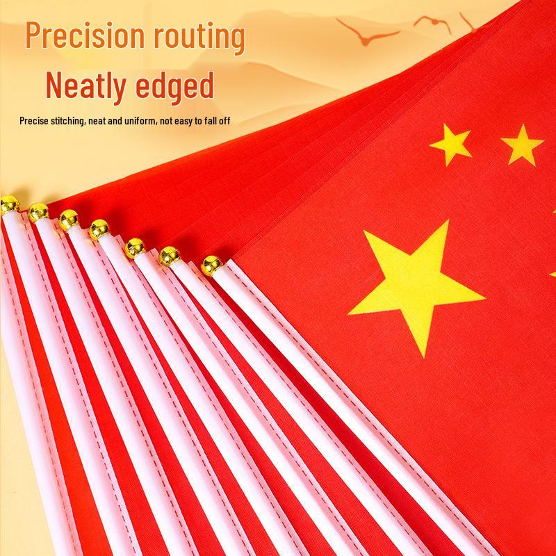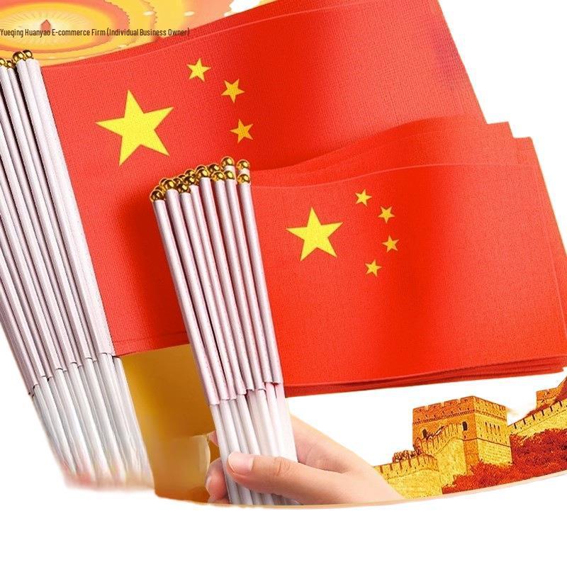Small Handheld Chinese National Flag - Five-Star Red Flag with Stick