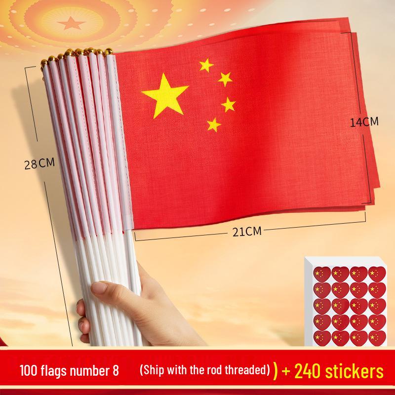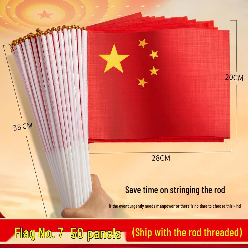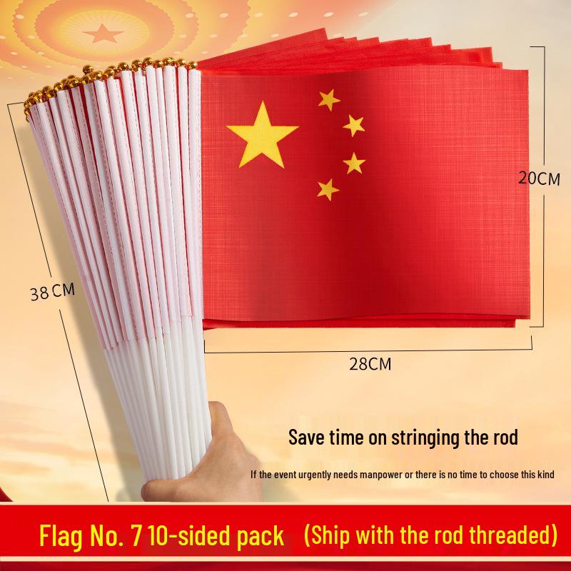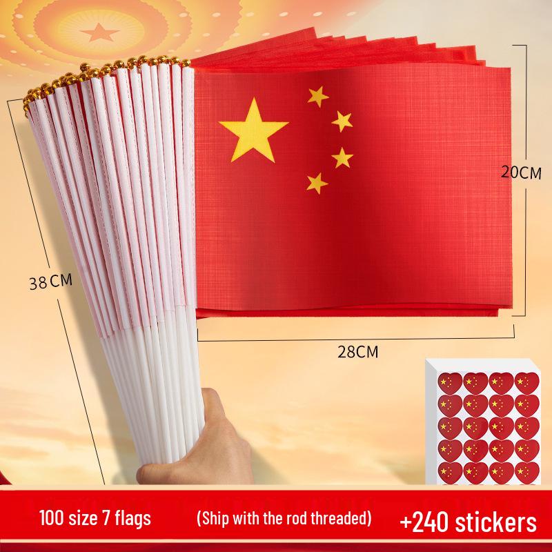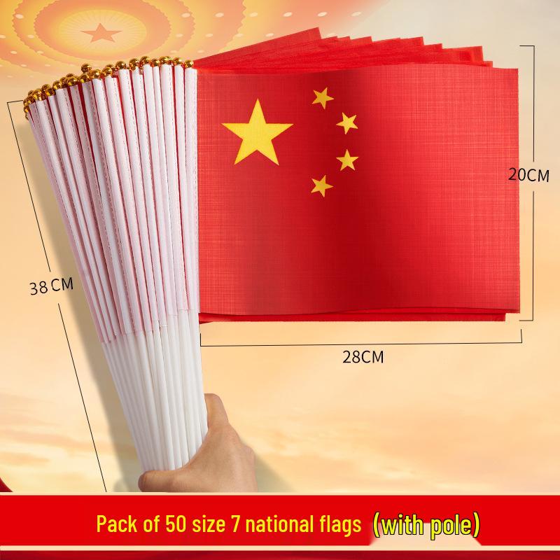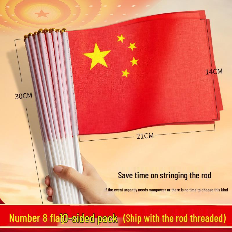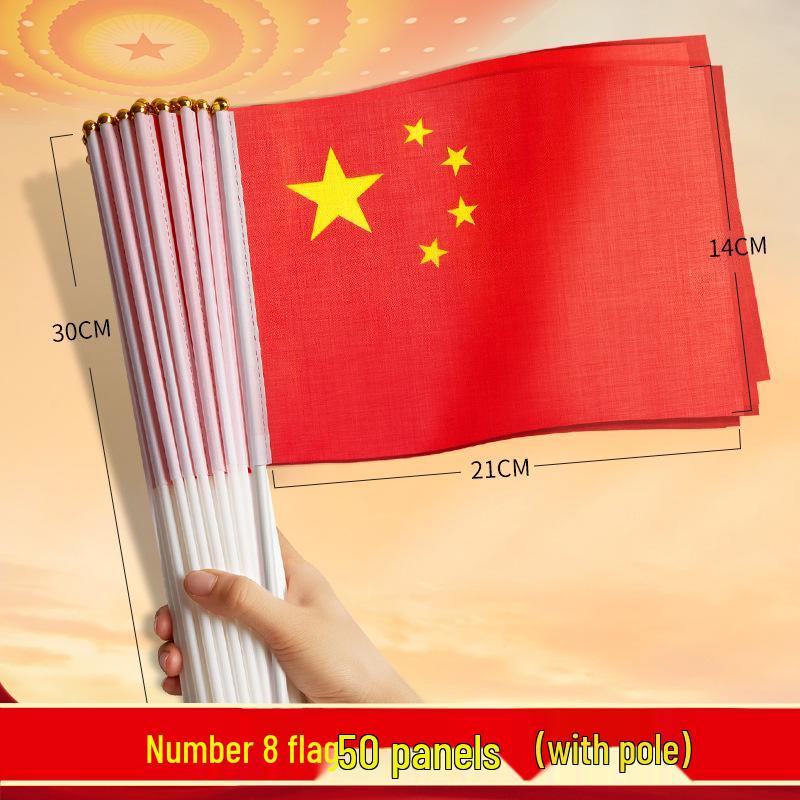 Small Handheld Chinese National Flag - Five-Star Red Flag with Stick