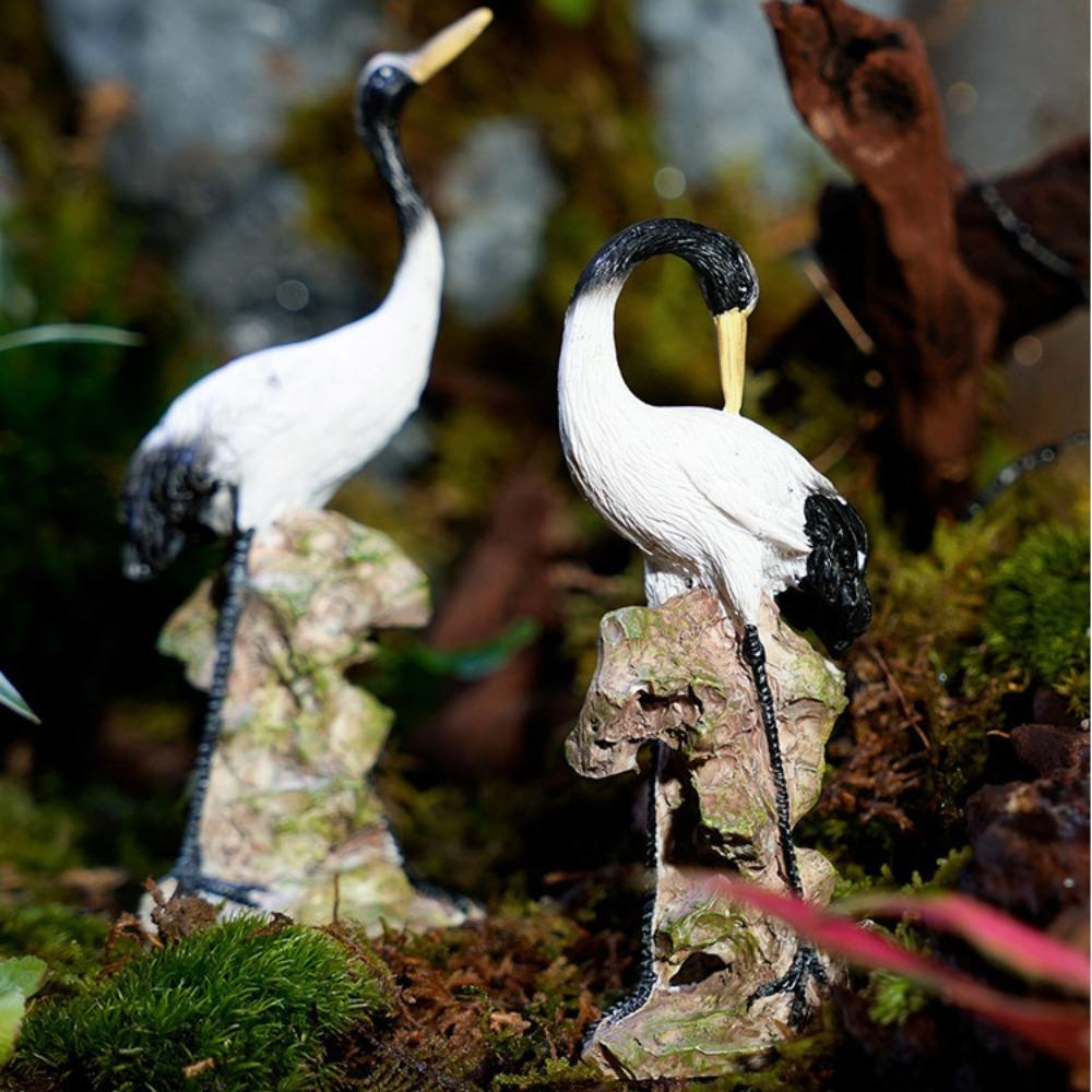 Миниатюрный венценосный журавль, статуэтка журавля, китайская статуэтка птицы из смолы для сада фей, украшение для аквариума, бонсай, ландшафтный декор для дома