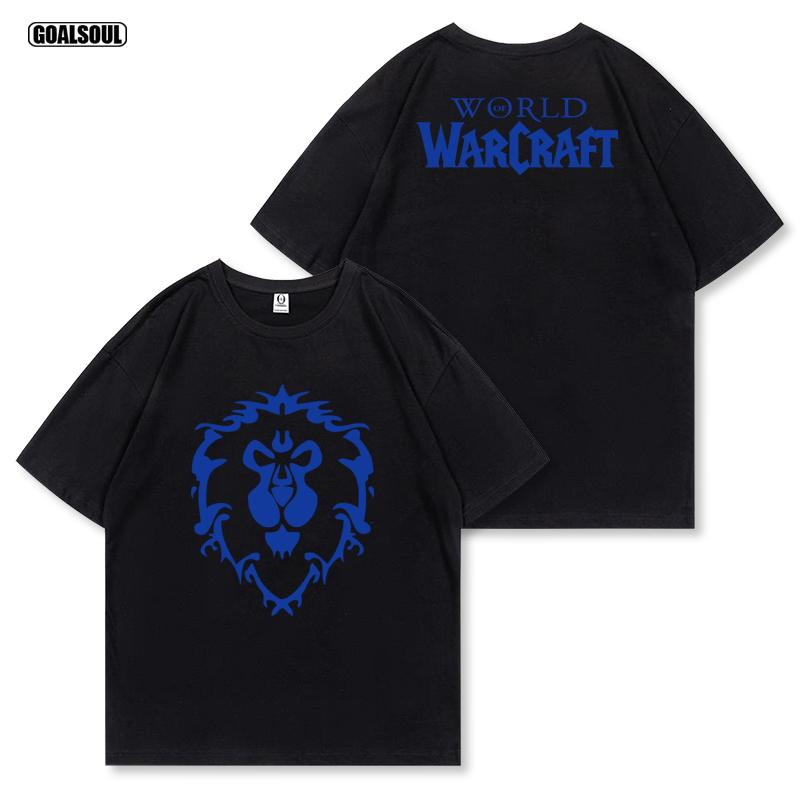 Футболка World of Warcraft 2025 Логотип Орды Значок Альянса WOW Американский Ретро Повседневный Тяжелый Хлопок Короткий Рукав