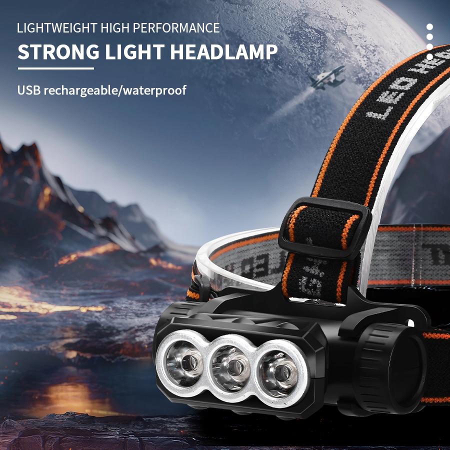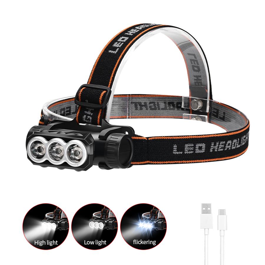 2/3 светодиодный налобный фонарь, 3 режима, мощный водонепроницаемый налобный фонарь Type-C, перезаряжаемый 18650, для кемпинга, охоты