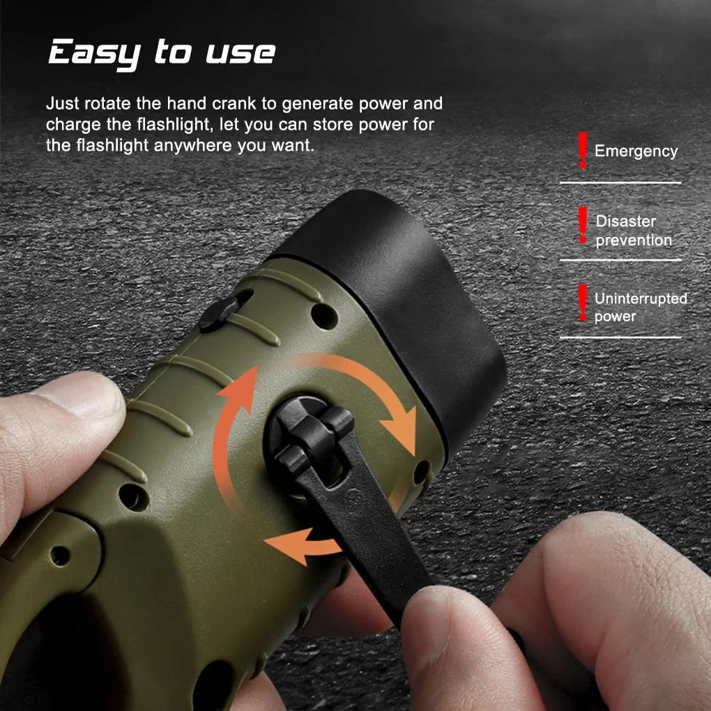Светодиодный фонарик с рукояткой, перезаряжаемый на солнечной батарее, снаряжение для выживания, автономный зарядный фонарь, динамо-машина для рыбалки, катания на лодках, пешего туризма