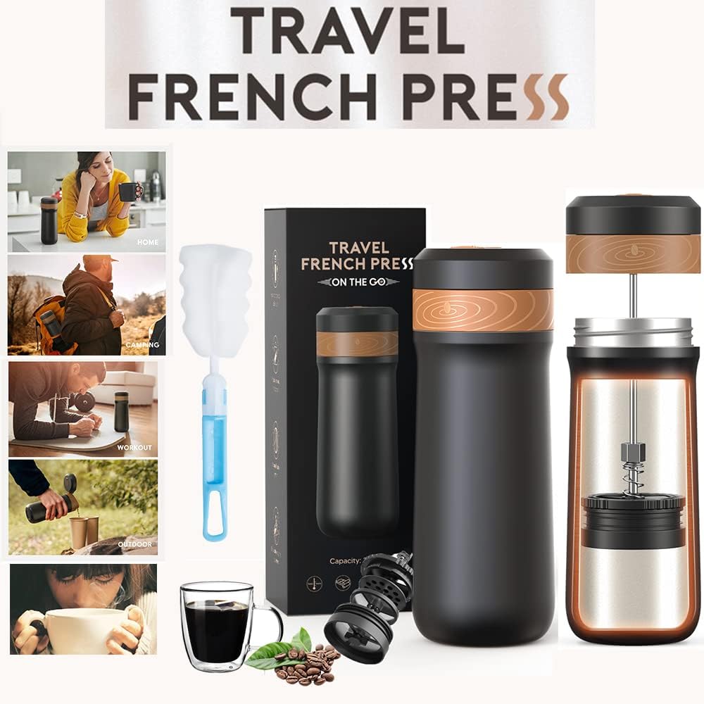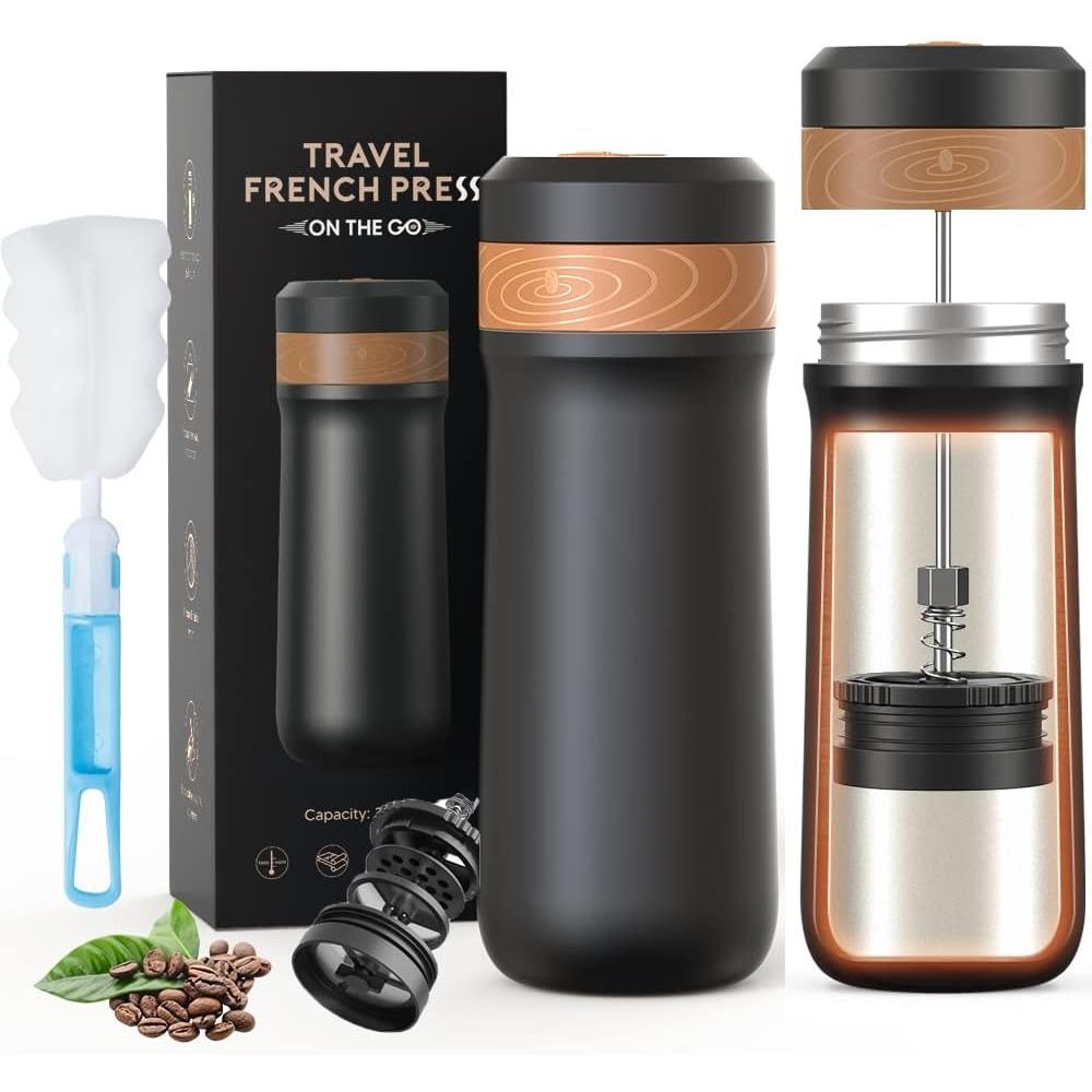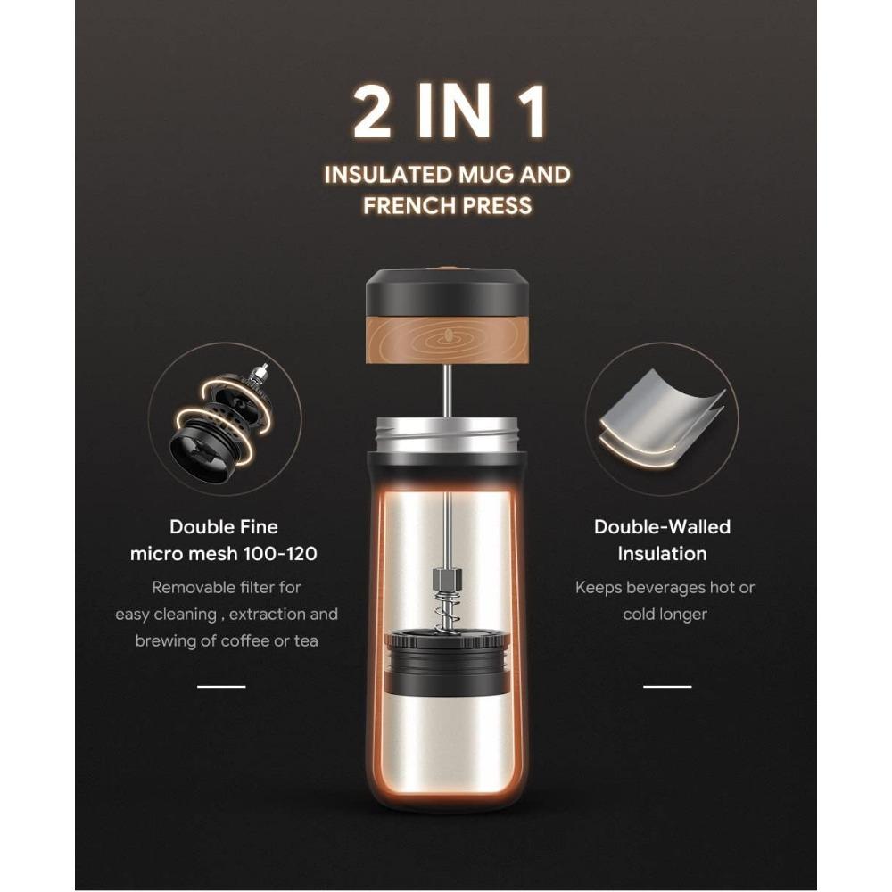 2 в 1 12 унций Портативная френч-пресс кофеварка для путешествий, кемпинга, кружка для кофе из нержавеющей стали с вакуумной изоляцией, чашка для чая