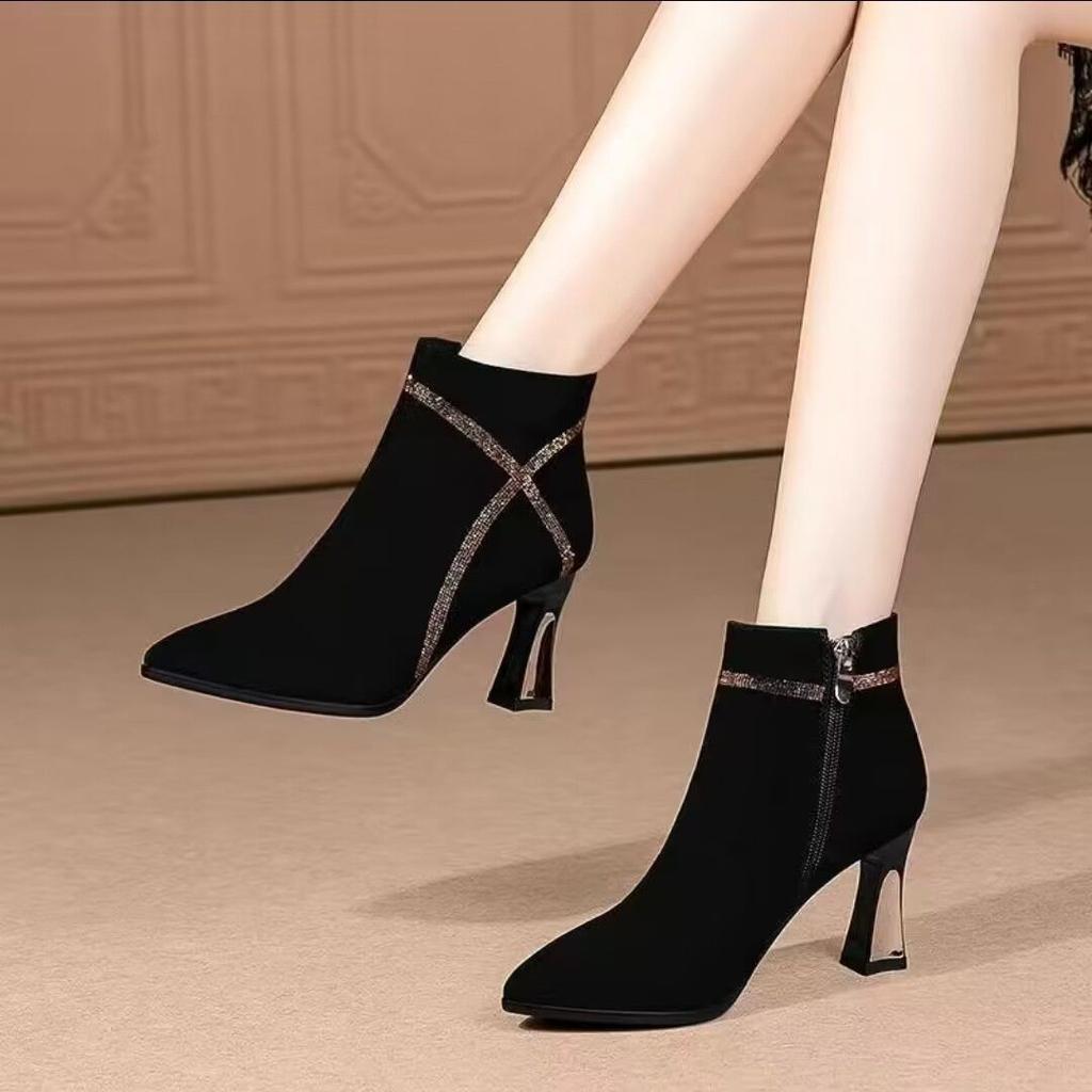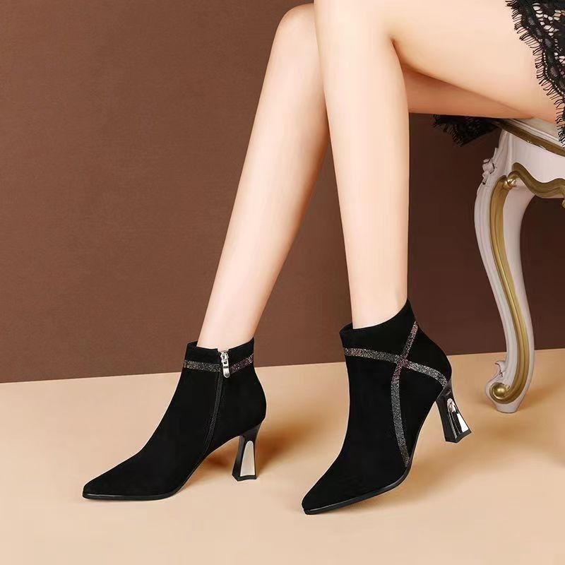 Элегантные ботильоны на среднем каблуке с острым носком из черной замши, осенне-зимние ботильоны до щиколотки для женщин Y2k, женская короткая обувь по акции