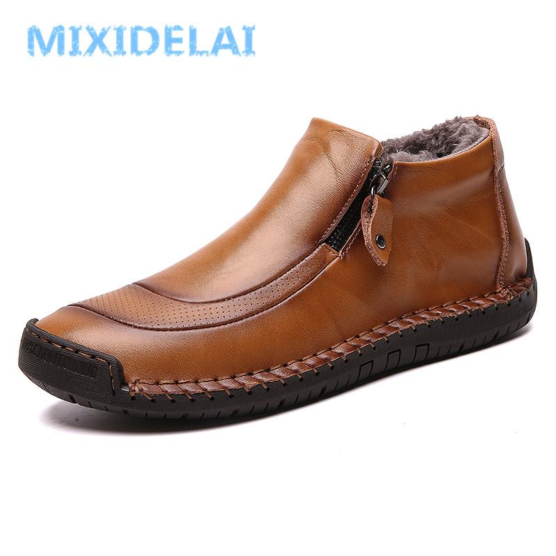 MIXIDELAI Новая Мода Мужские Ботинки Высокое Качество Спилок Кожи Ботильоны Снежные Ботинки Обувь Теплый Мех Плюш Зимняя Обувь Большой Размер 38-48