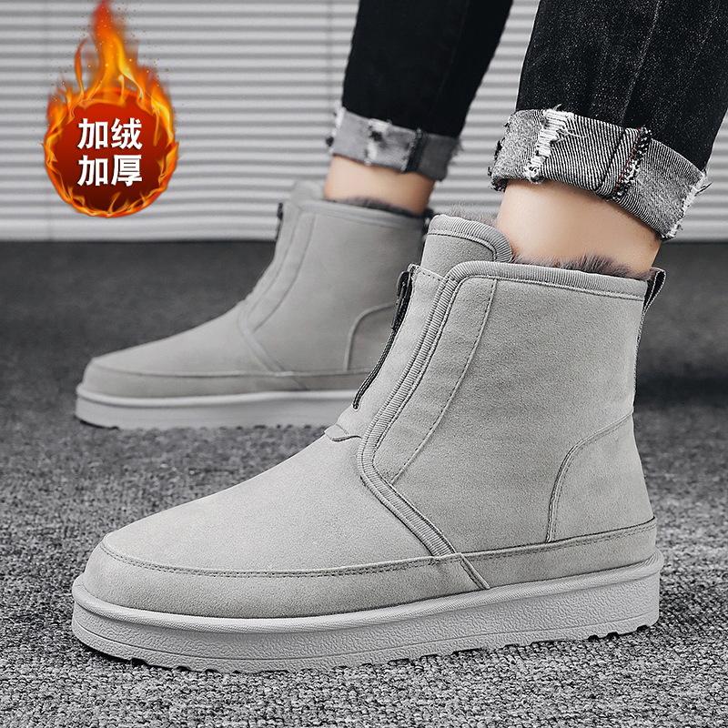 Зимние мужские ботинки на толстой подошве с круглым носком, короткий плюш, теплые, удобные, уличная повседневная обувь, мужские хлопковые ботинки
