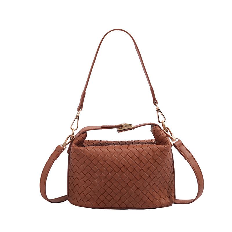 Women's Leather Woven Small Square Bag 2025 New Autumn Winter Crossbody Shoulder Bag Niche Design Handheld Lunch Box Bag