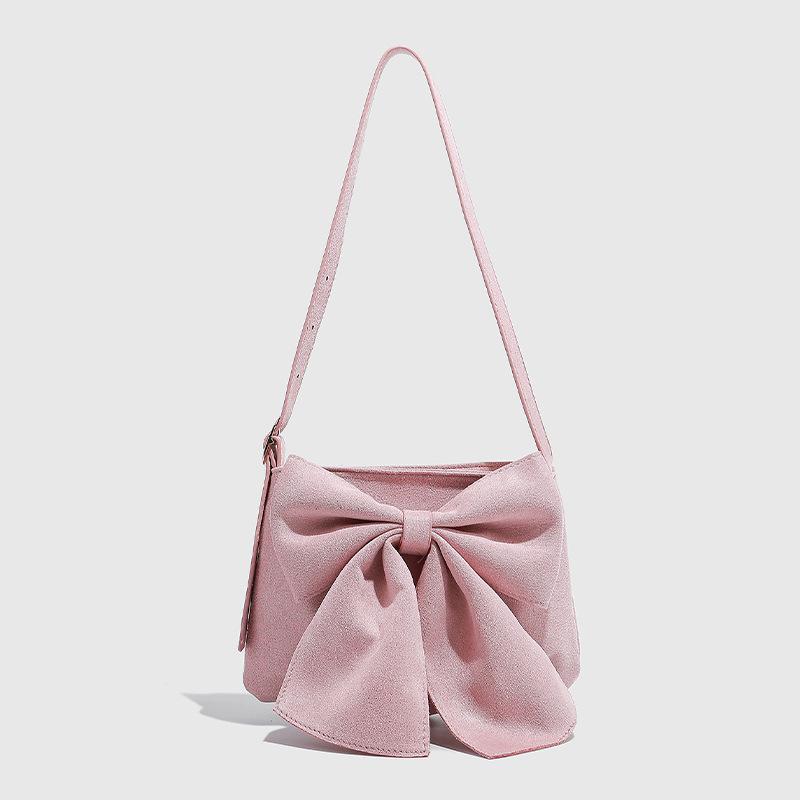 Розовая сумка на плечо с большим бантом, милый стиль, сумка под мышкой для девочки, новинка 2025, осень-зима, матовая сумочка