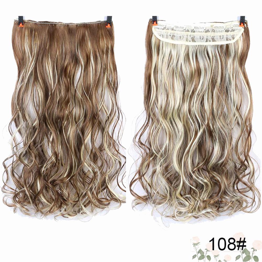 24 дюйма Длинные Вьющиеся Женские Накладные Пряди на Клипсах Черно-Коричневые Высокотемпературные Синтетические Волосы