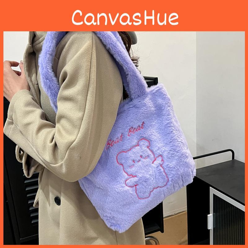 Bear Design Adorable Plush Tote Bag In Various Colors For Trendy Everyday Fashion