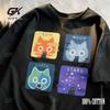 Летняя винтажная футболка с котом из чистого хлопка, унисекс, повседневная, оверсайз, летняя базовая вещь, мягкий хлопок, для ежедневной носки, новая футболка 2025