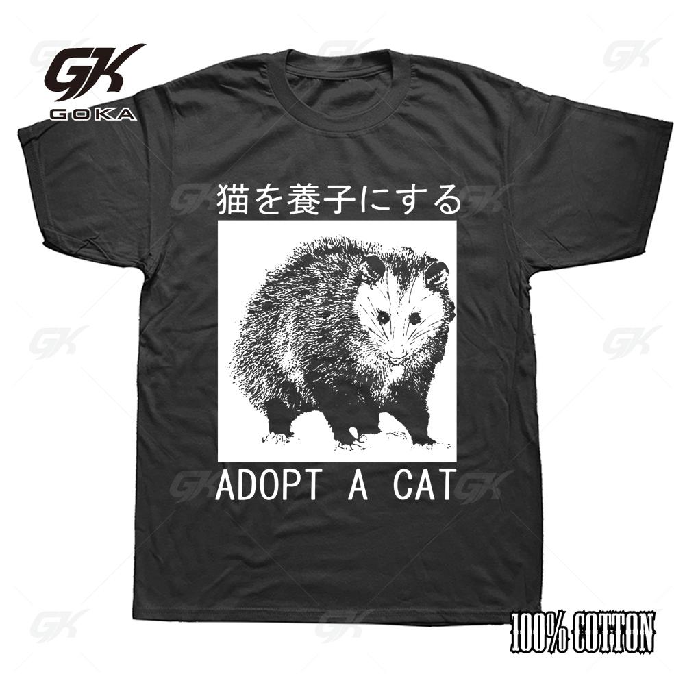 Adopt A Cat Opossum Japanese T Shirts Graphic Cotton Streetwear Short Sleeve Birthday Gifts Funny Style T-shirt Mens Clothing — купить товар онлайн с бесплатной доставкой по всему миру!