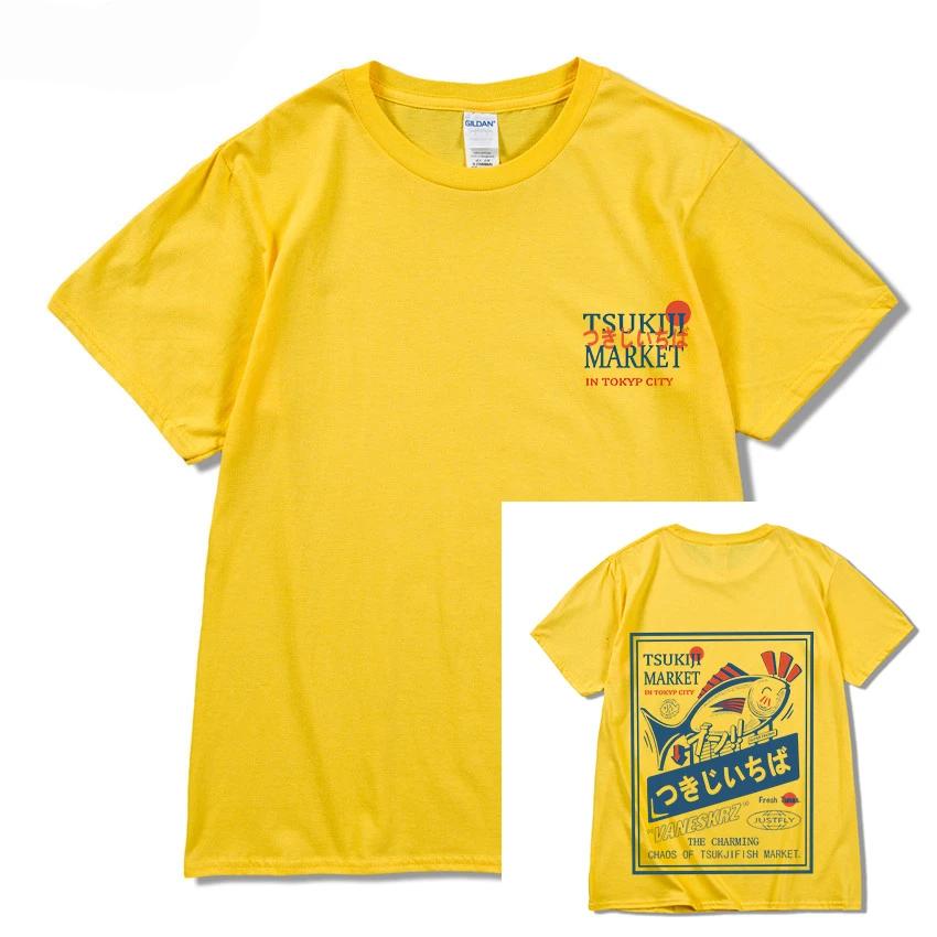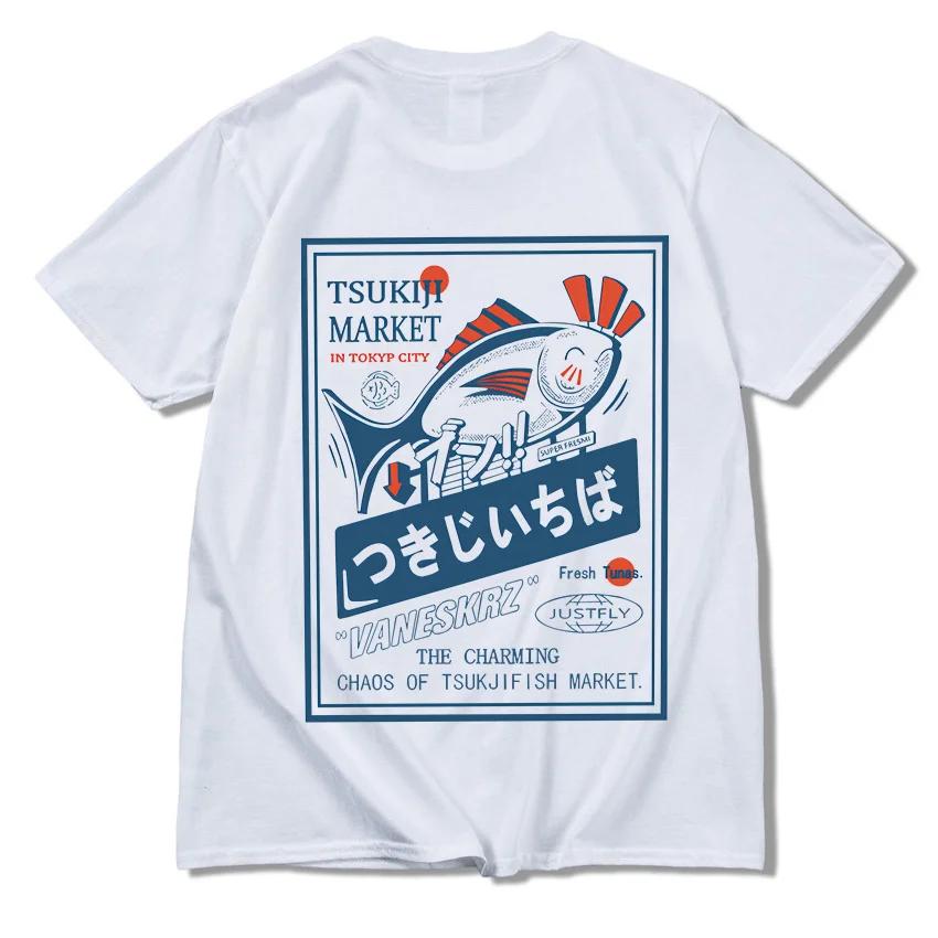 2025 Веселый взрыв Япония Хай-стрит принт счастливой рыбы повседневный свободный хип-хоп мужской повседневный удобный хлопок короткий рукав