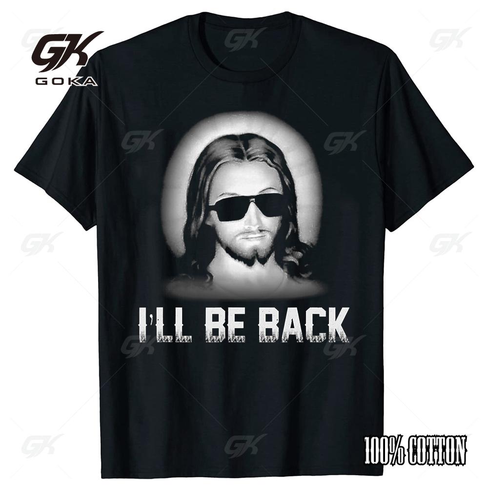 Christian I'll Be Back Funny Jesus Print Christ Cotton T Shirt Women and Men Short-Sleeve O-neck Cool Style Streetwear Vintage