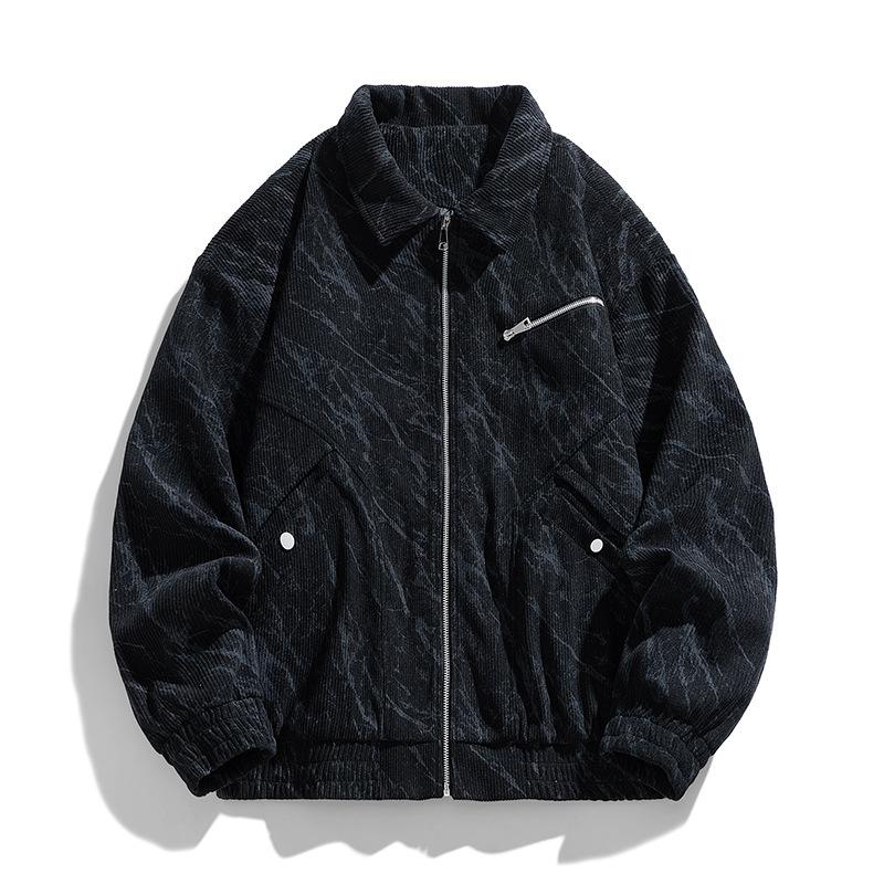 Ретро Вельветовая Куртка Тай-Дай с Лацканами Мужская Куртка на Молнии